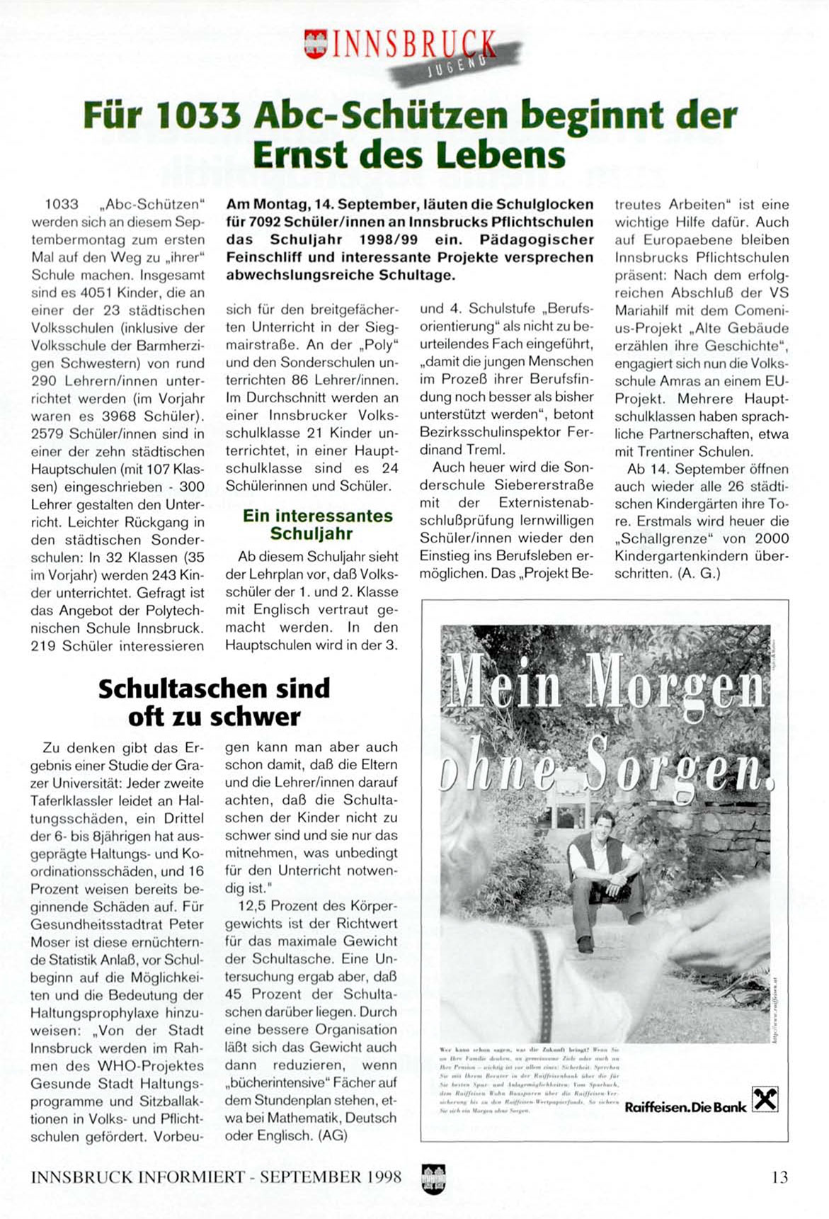 Moser ist diese ernüchternde Statistik Anlaß, vor Schulbeginn auf die Möglichkeiten und die Bedeutung der