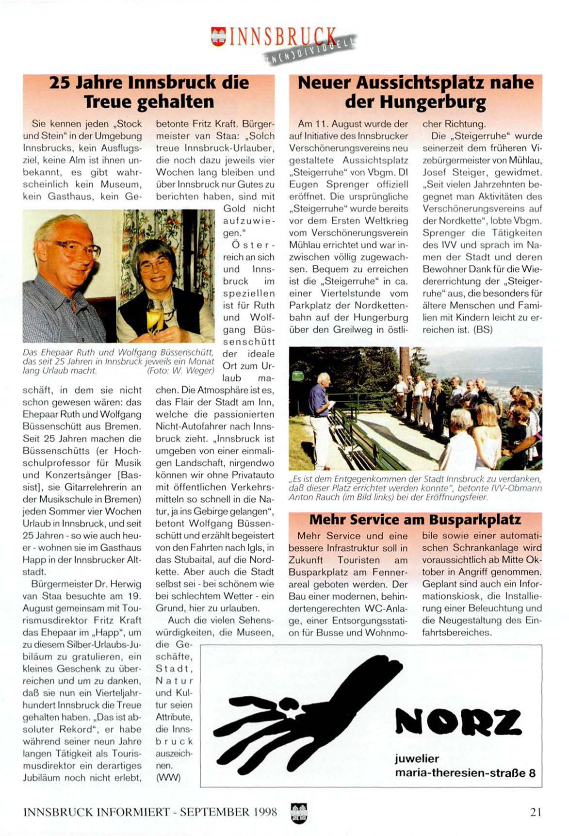 das seit 25 Jahren in Innsbruck jeweils ein Monat Ort zum Urlang Urlaub macht.