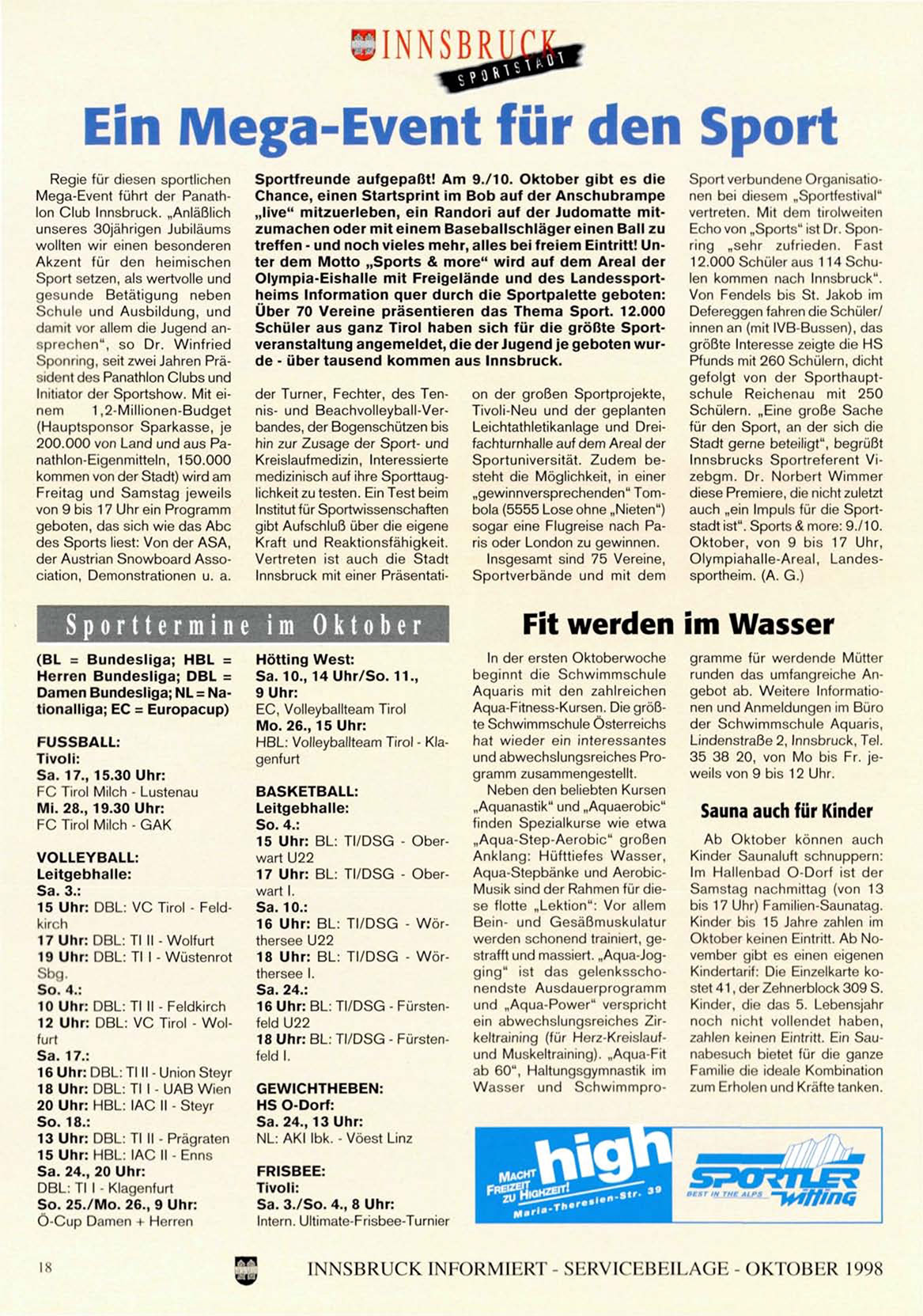 Mega-Event fuhrt der Panathlon Club Innsbruck. ,,AnlaBlich