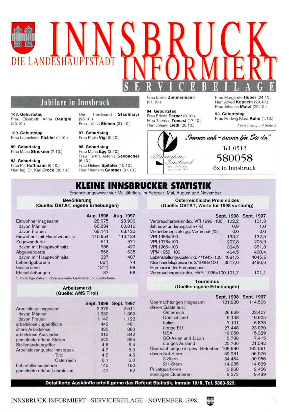 Detaillierte Auskünfte erteilt gerne das Referat Statistik, Innrain 10/11, Tel. 5360-522.