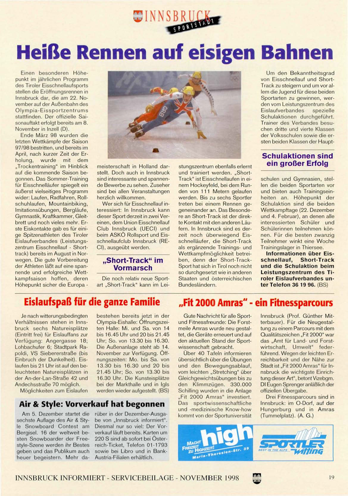 Wettkampfmöglichkeit betreiben, denn der Short-TrackSport hat sich in Tirol noch nicht