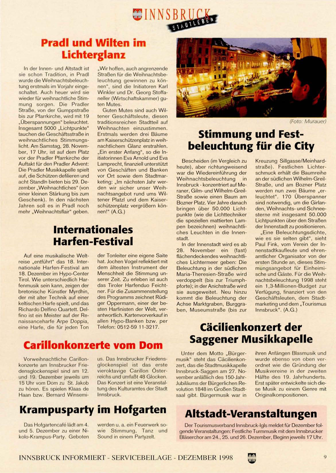 ersten Stunde an, dieses Stimmungsangebot für Einheimische und Gäste. Für die Weihnachtsbeleuchtung 1998 steht