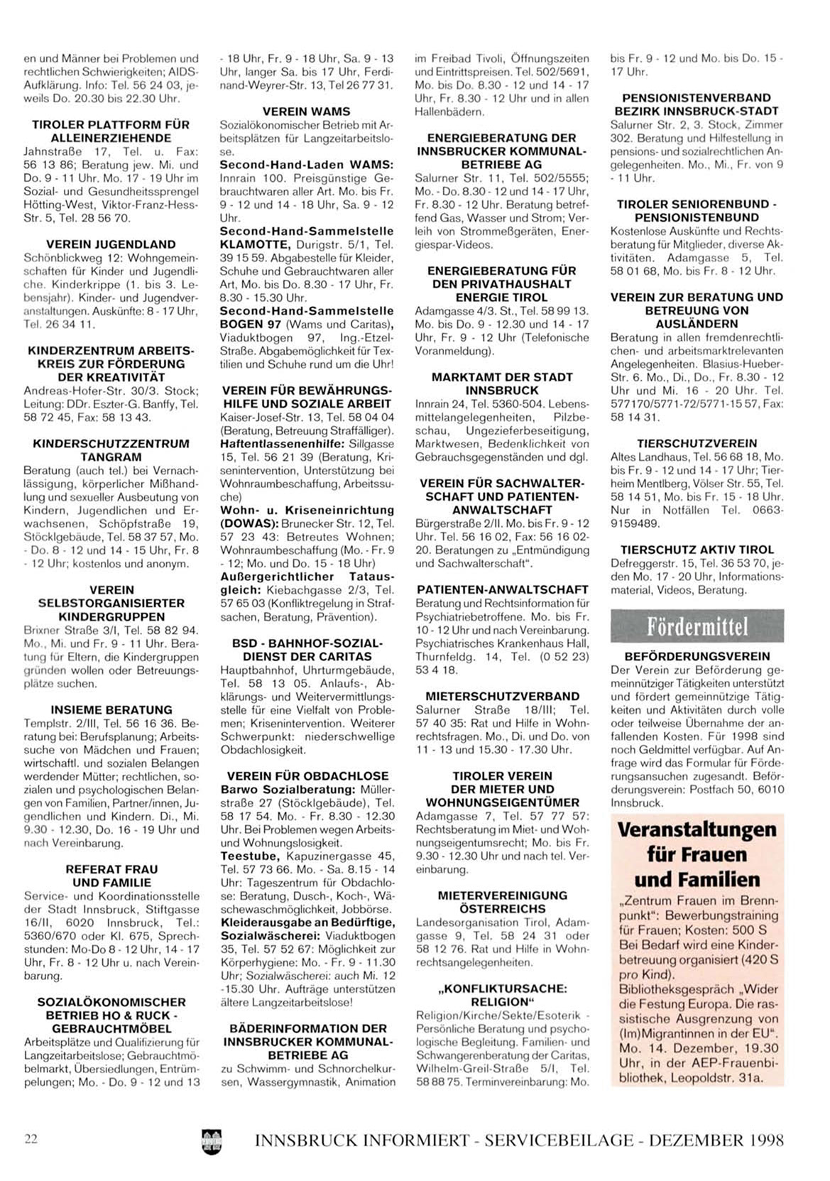 INNSBRUCK INFORMIERT - SERVICEBEILAGE - DEZEMBER 1998