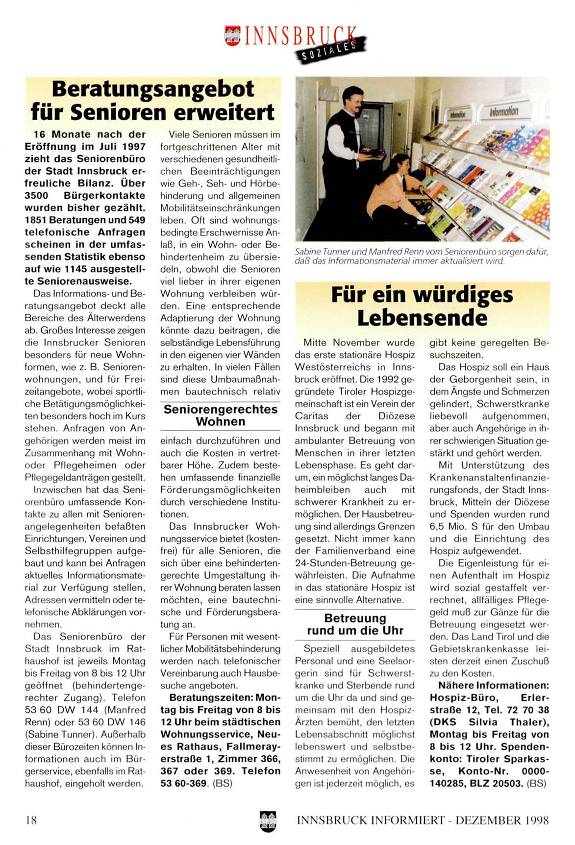 Das Innsbrucker Wohnungsservice bietet (kostenfrei) für alle Senioren, die