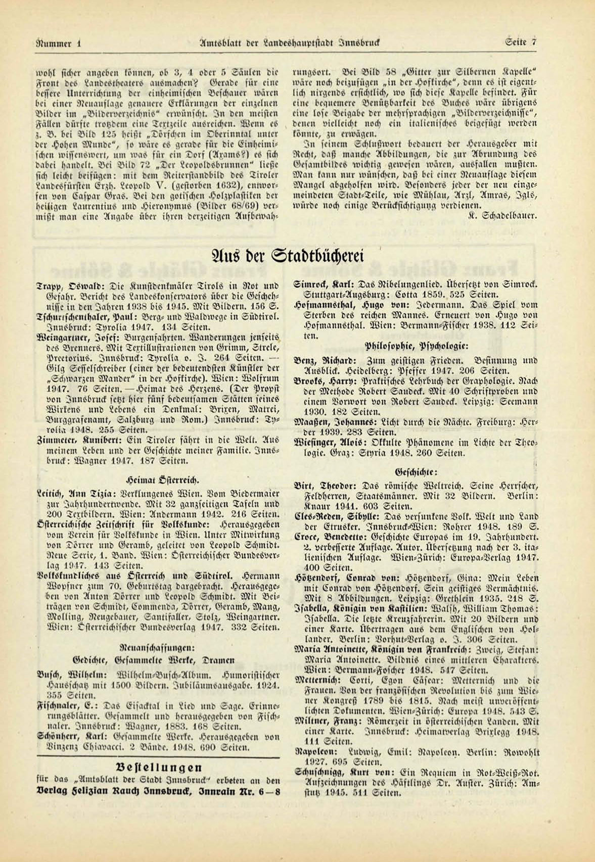 Verlag zeligian Rauch Innsbruck, I n n r a i n Nr. 6 — 8