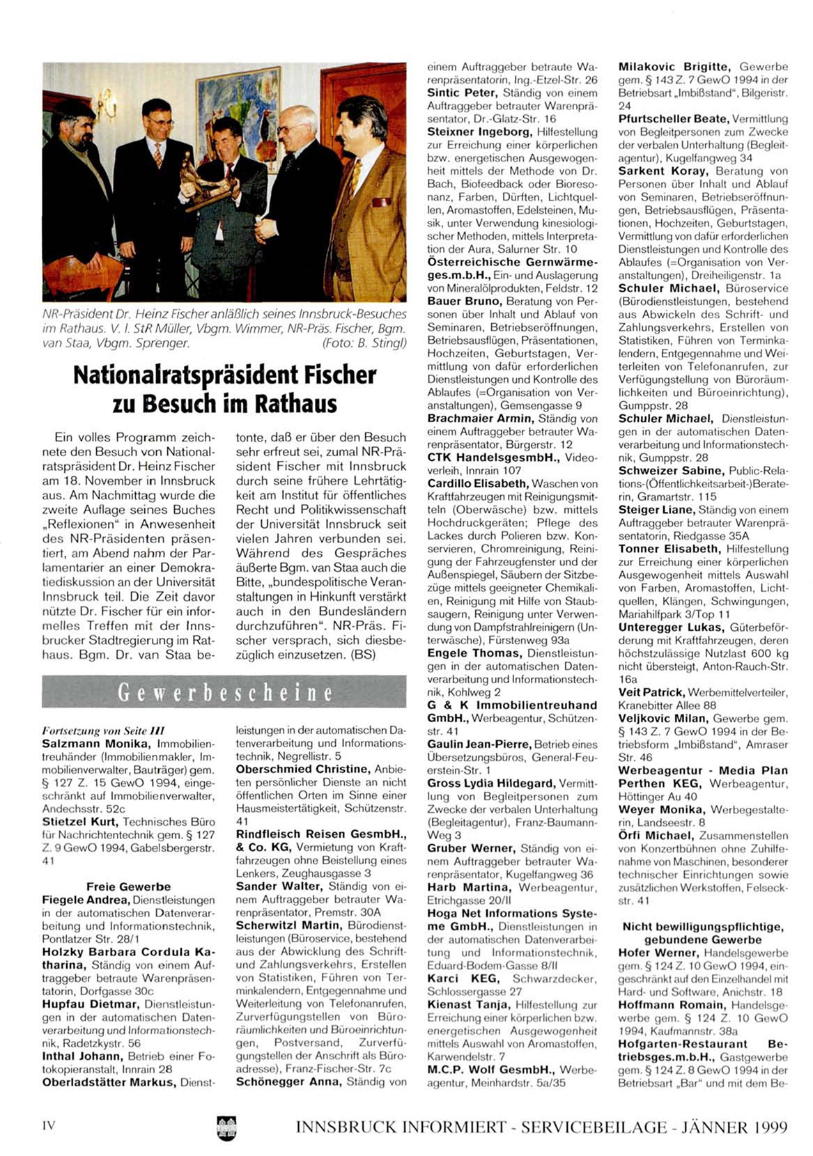 nützte Dr. Fischer für ein informelles Treffen mit der Innsbrucker Stadtregierung im Rathaus. Bgm. Dr. van Staa be-