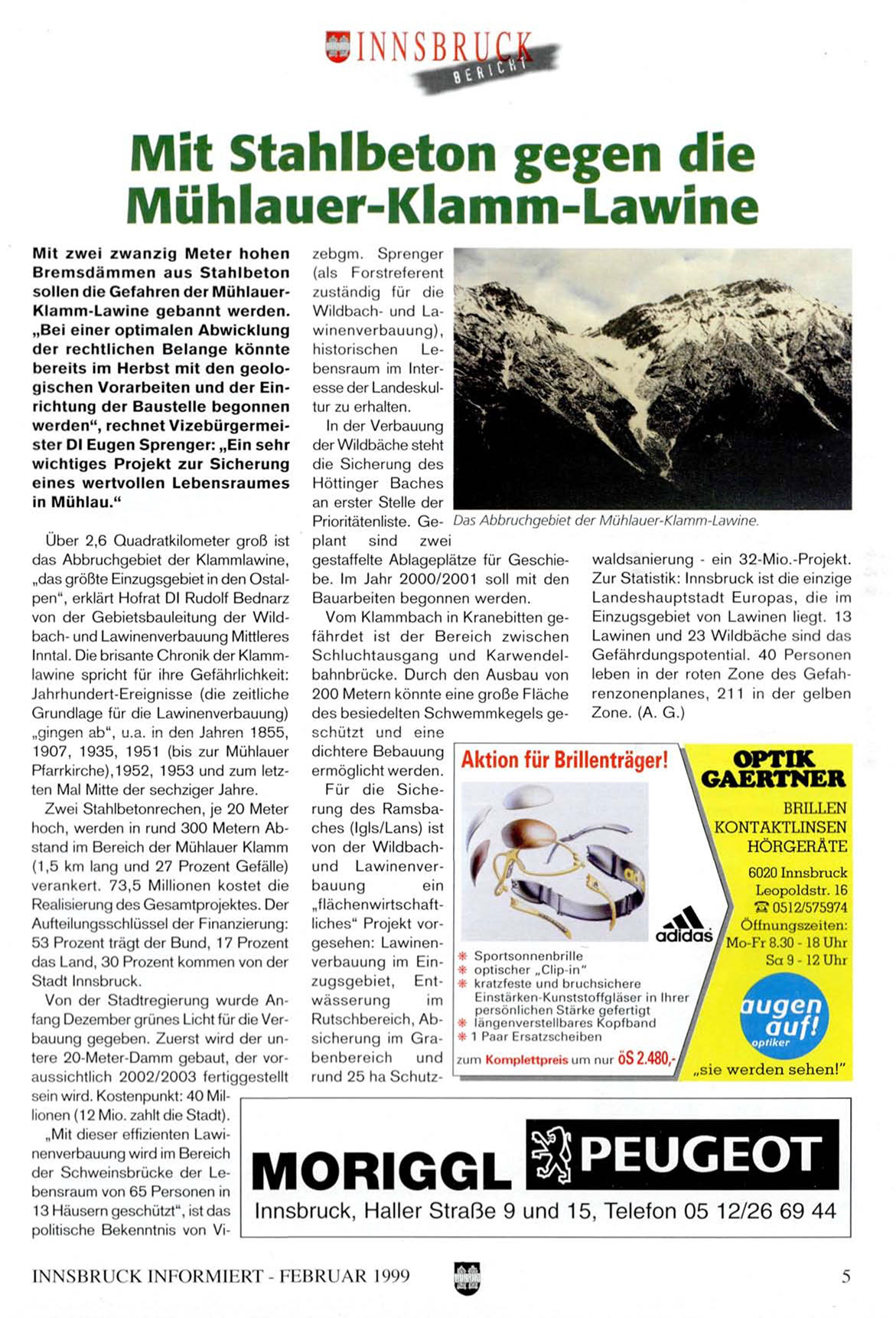 sollen die Gefahren der MühlauerKlarnrn-Lawine gebannt werden.