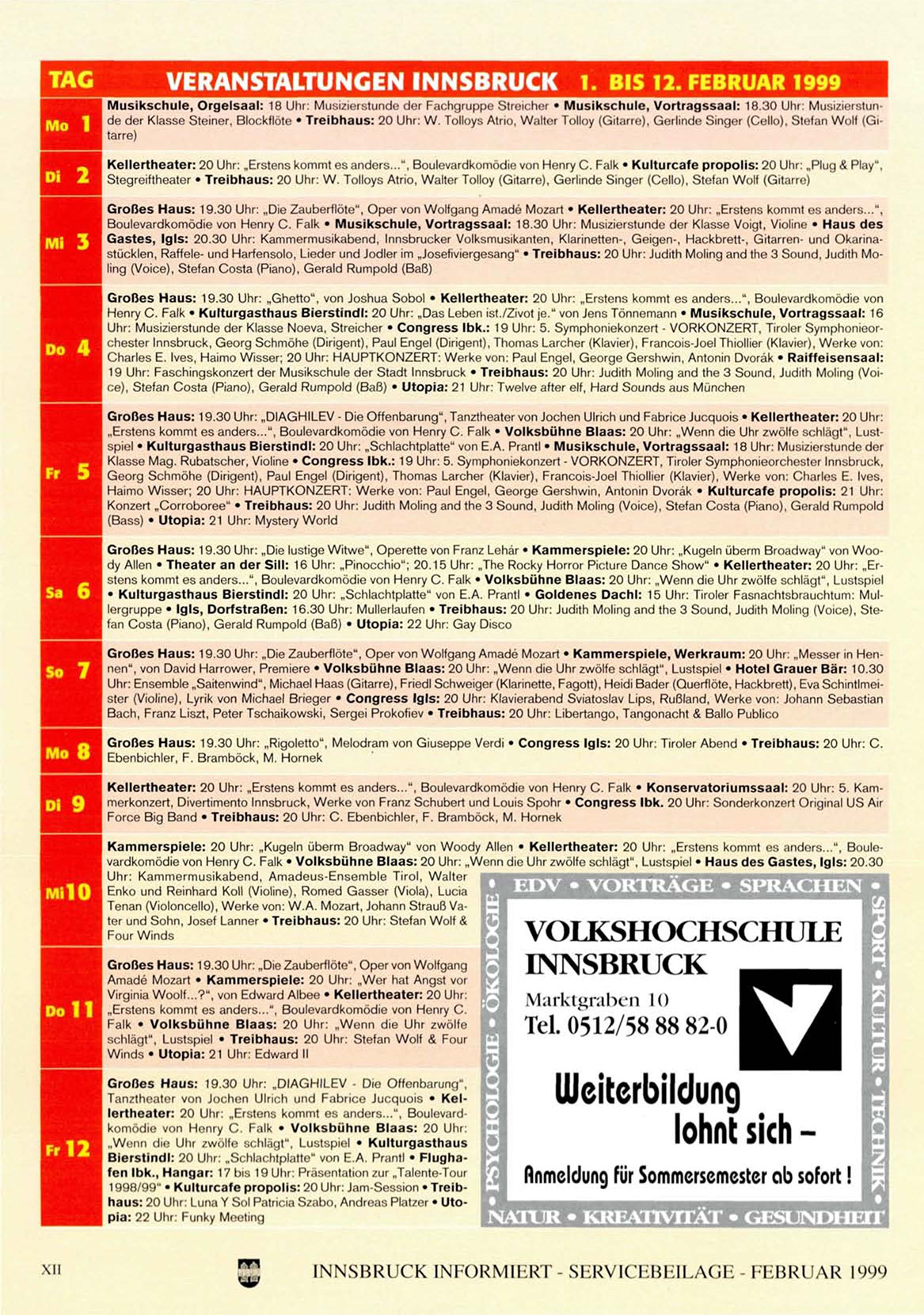 INNSBRUCK INFORMIERT- SFRVICFBFILAGL - FEBRUAR 1999