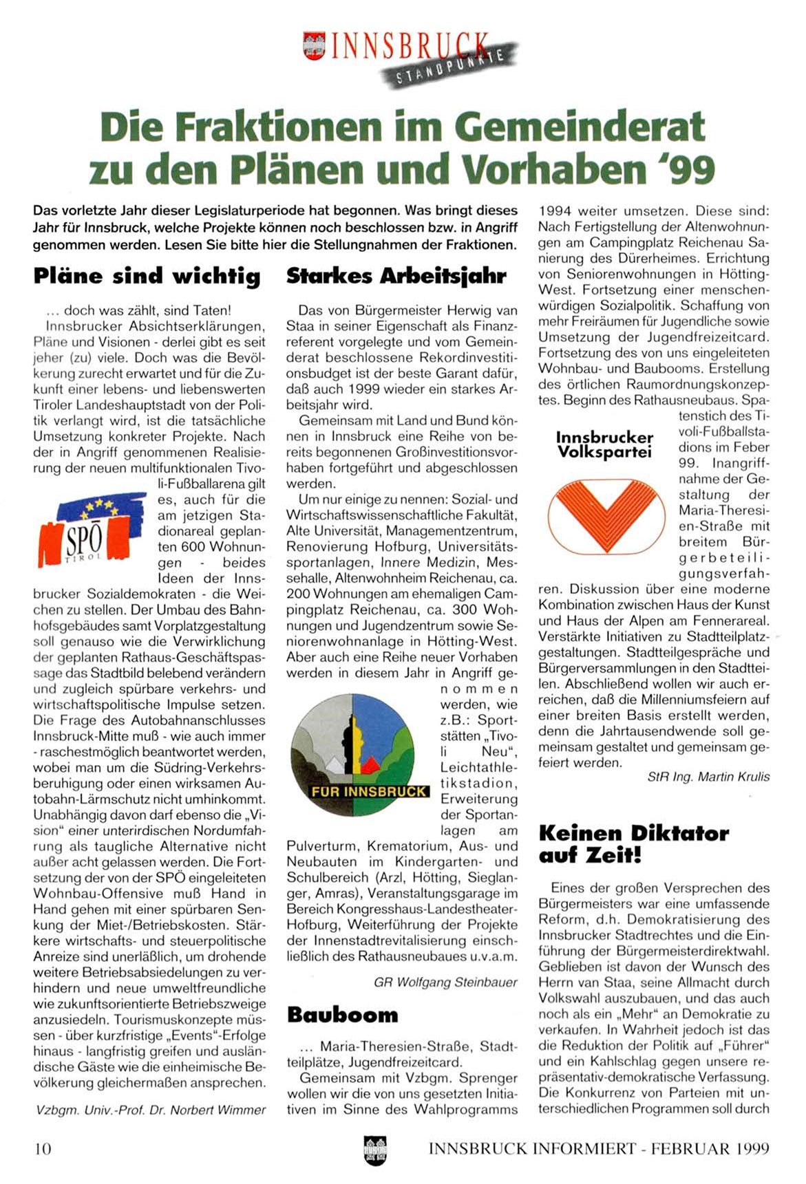 Vzbgm. Univ.-Prof. Dr. Norbert Wimmer tiven im Sinne des Wahlprogramms