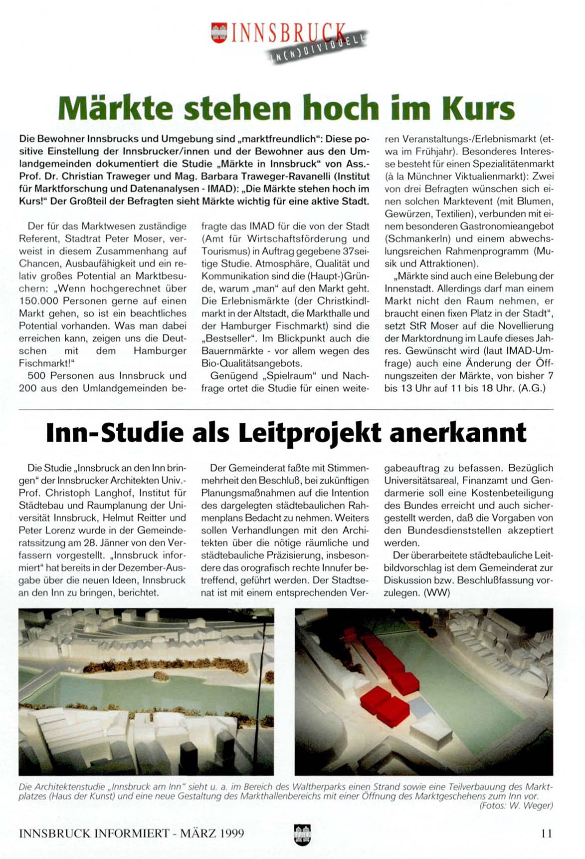 Die Bewohner Innsbrucks und Umgebung sind „marktfreundlich": Diese positive Einstellung der Innsbrucker/innen und der Bewohner aus den Umlandgemeinden dokumentiert die Studie „Markte in Innsbruck" von Ass.Prof. Dr. Christian Traweger und Mag. Barbara Traweger-Ravanelli (Institut