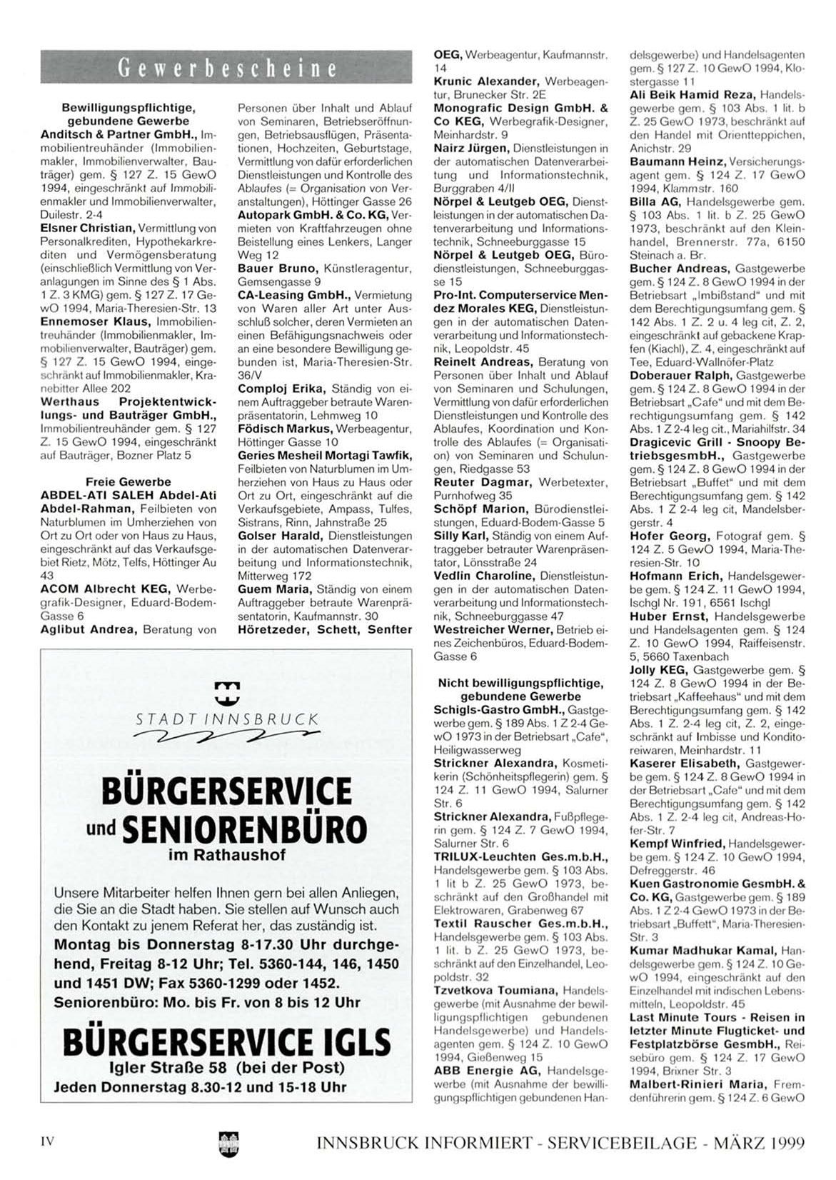 INNSBRUCK INFORMIERT - SERVICEBEILAGE - MÄRZ 1999