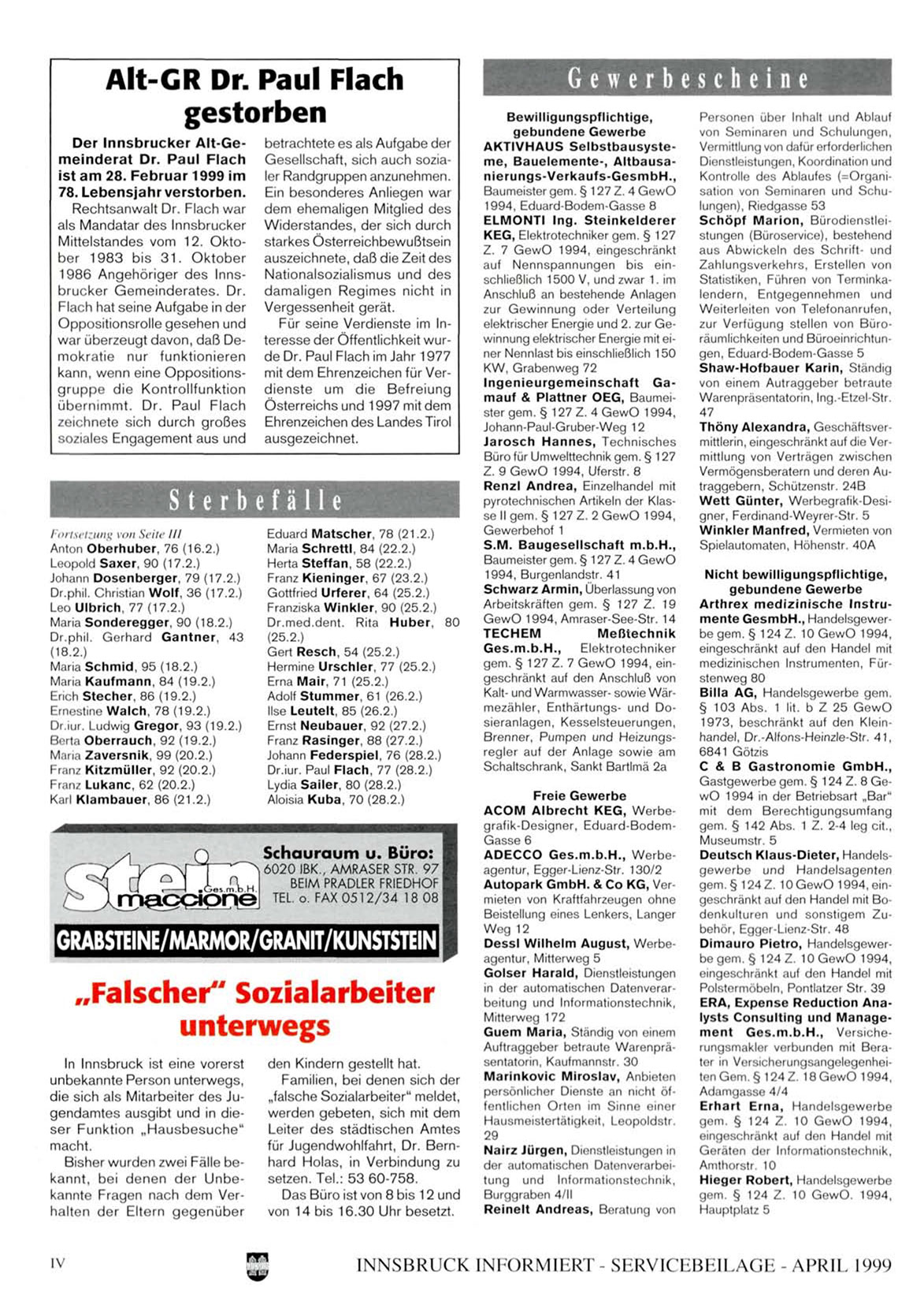 INNSBRUCK INI ORMIERT - SERV1CLBLILAGE - APRIL 1999