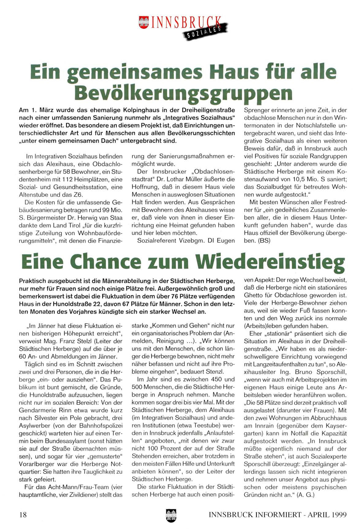 (im Integrativen Sozialhaus) und anderen Institutionen (etwa Teestube) werden in Innsbruck jedenfalls „Anlaufstellen" angeboten, „mit denen wir zwar