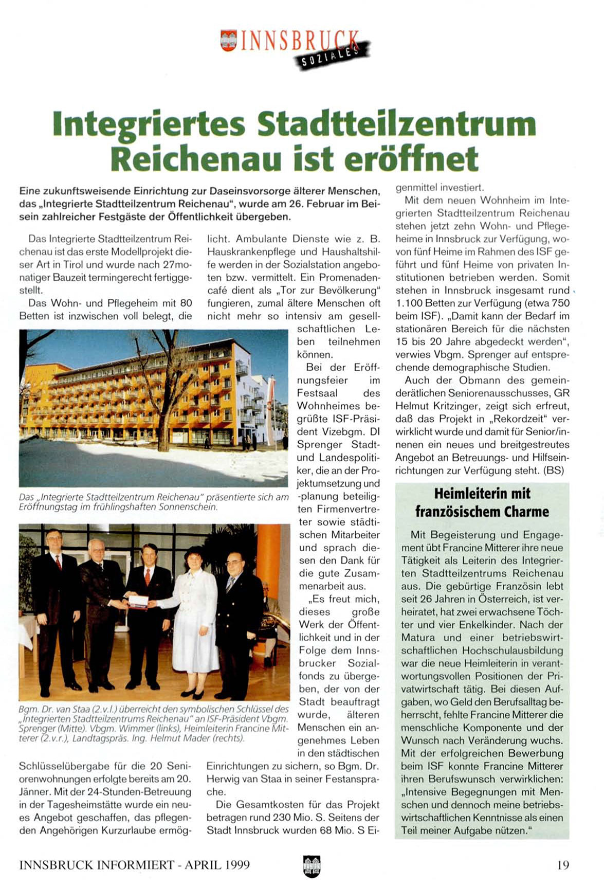 stehen jetzt zehn Wohn- und Pflegeheime in Innsbruck zur Verfügung, wovon fünf Heime im Rahmen des ISF geführt und fünf Heime von privaten Institutionen betrieben werden. Somit