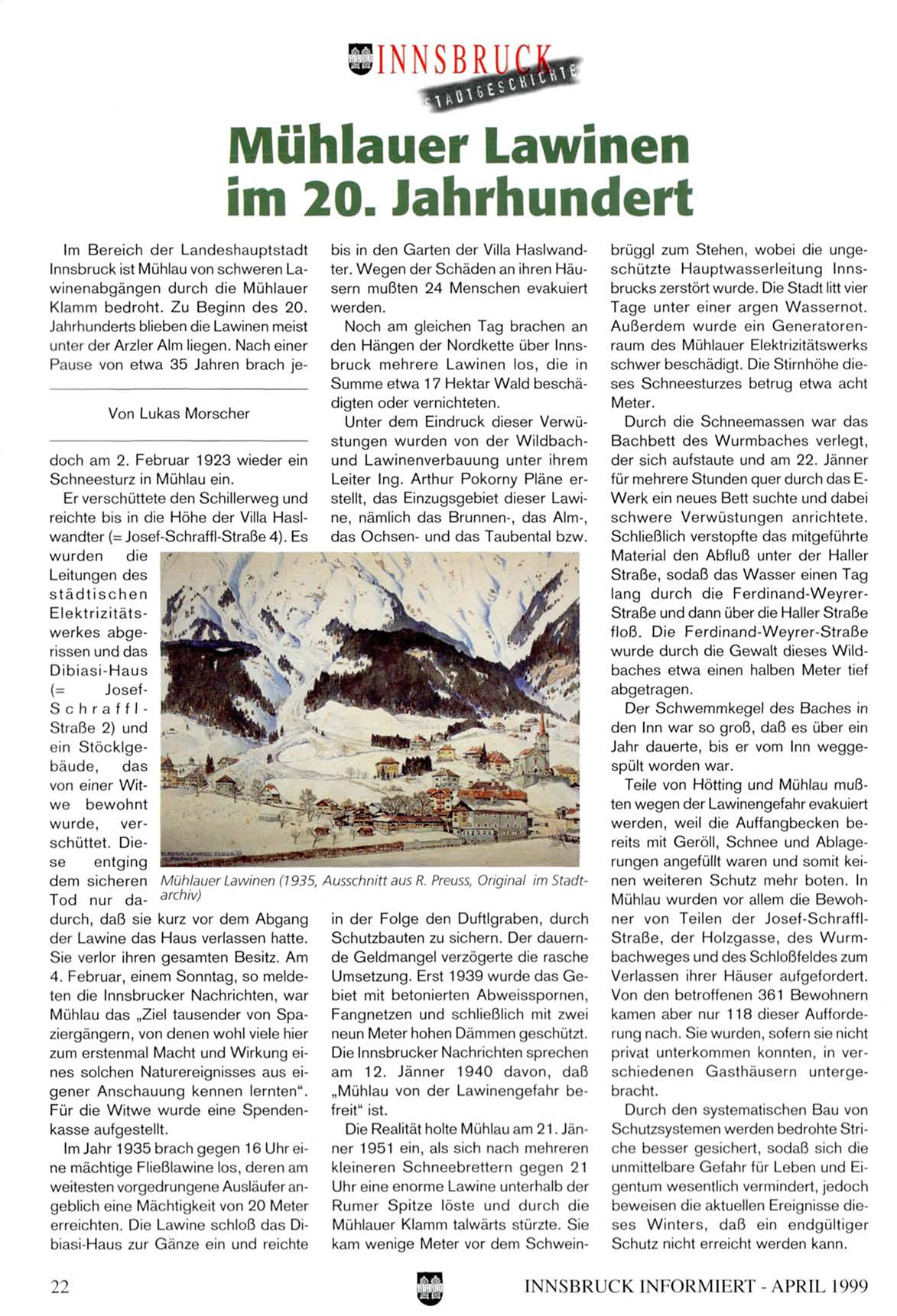 rungen angefüllt waren und somit keidem sicheren Mühlauer Lawinen (1935, Ausschnitt aus R. Preuss, Original im Stadt-nen weiteren Schutz mehr boten. In