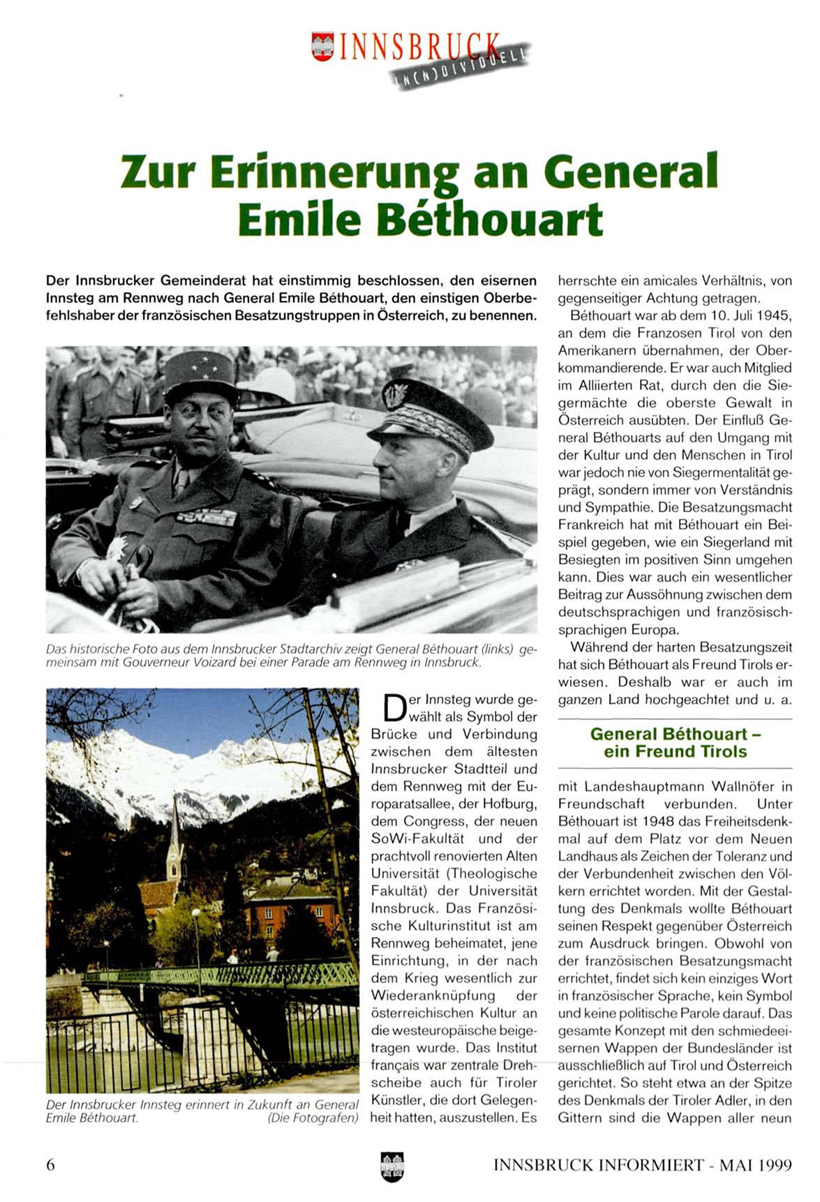 kern errichtet worden. Mit der GestalInnsbruck. Das Französi- tung des Denkmals wollte Bethouart