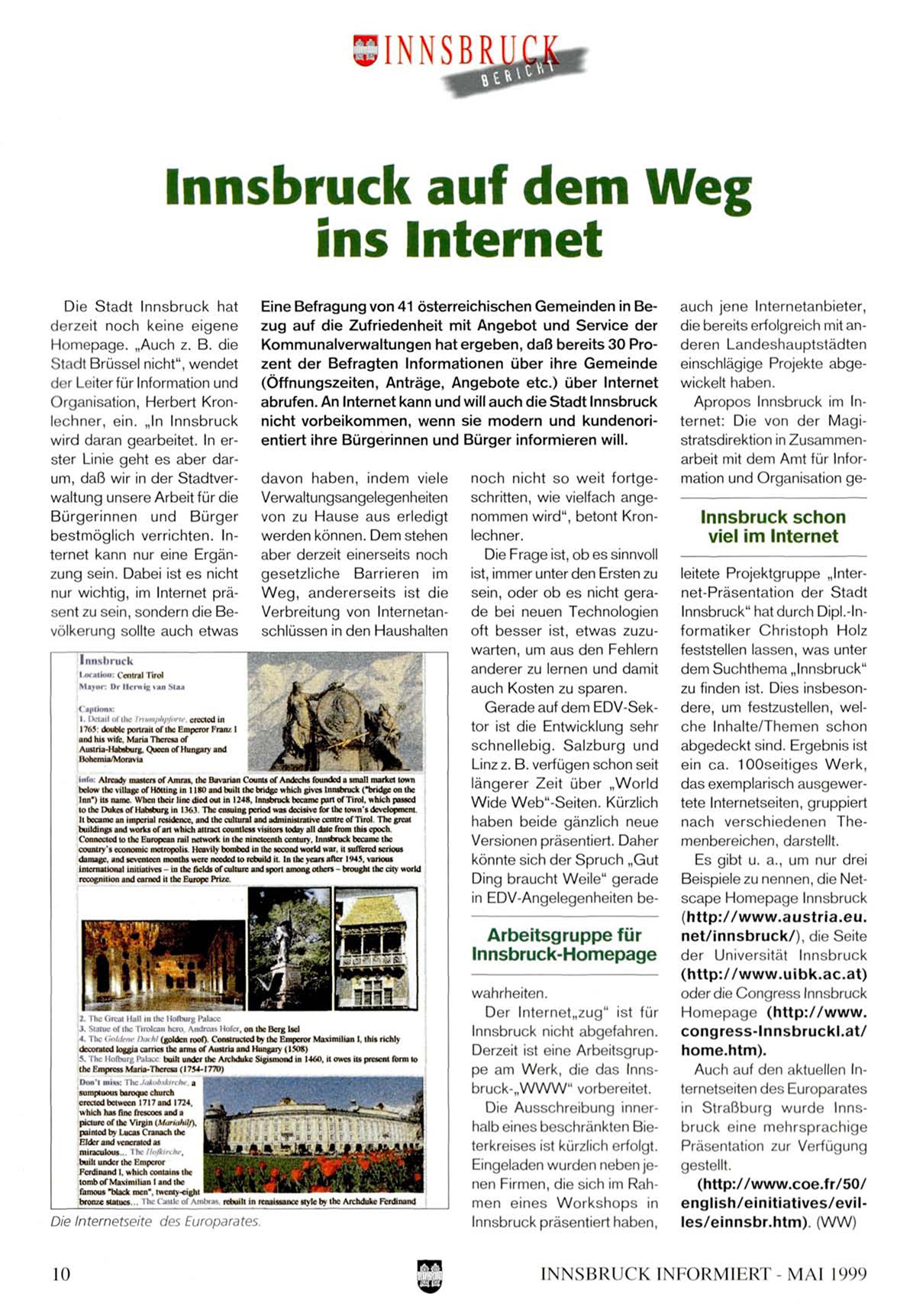 Apropos Innsbruck im Internet: Die von der Magistratsdirektion in Zusammenarbeit mit dem Amt für Information und Organisation ge-