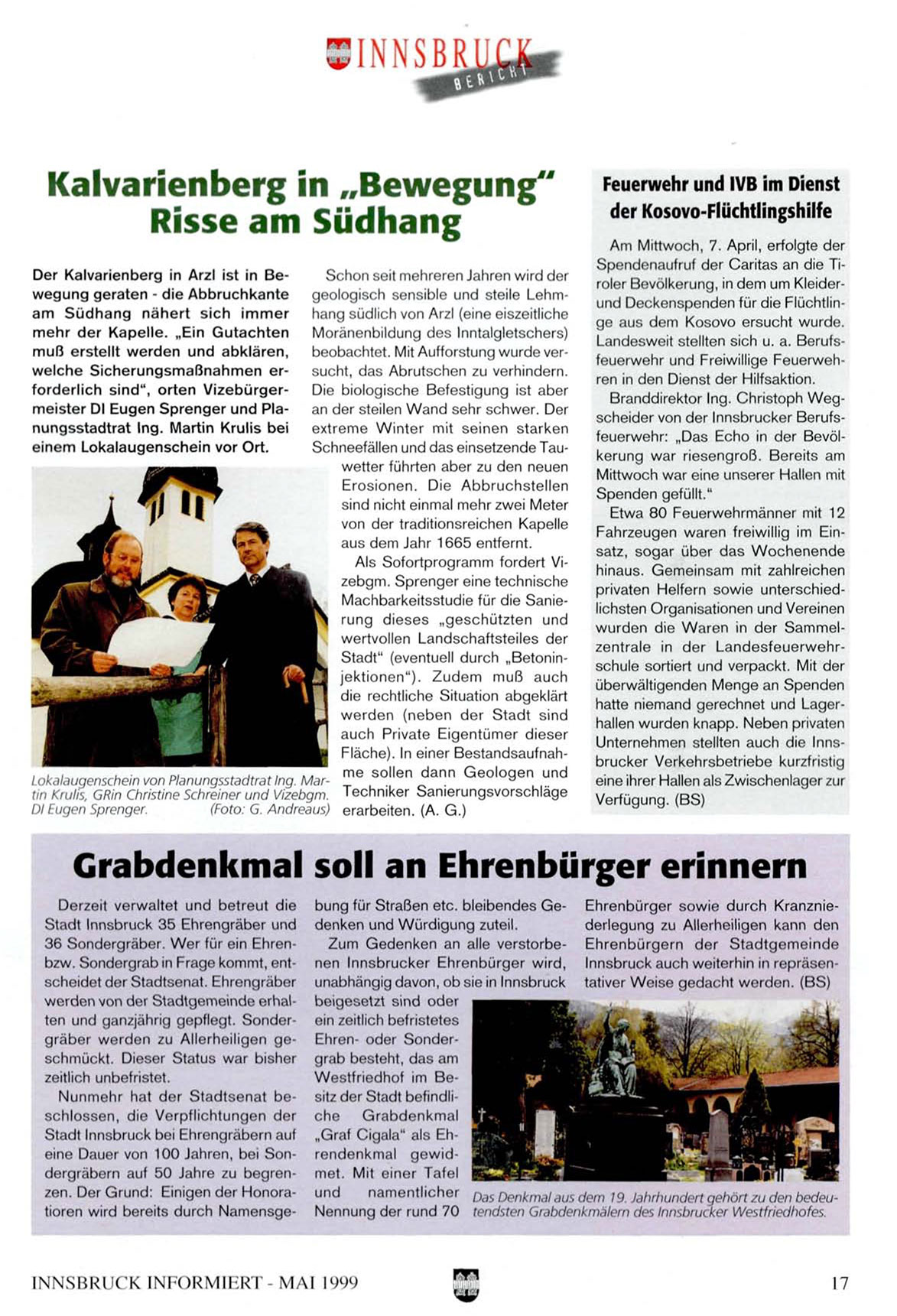 nen Innsbrucker Ehrenbürger wird, Innsbruck auch weiterhin in repräsenunabhängig davon, ob sie in Innsbruck tativer Weise gedacht werden. (BS)