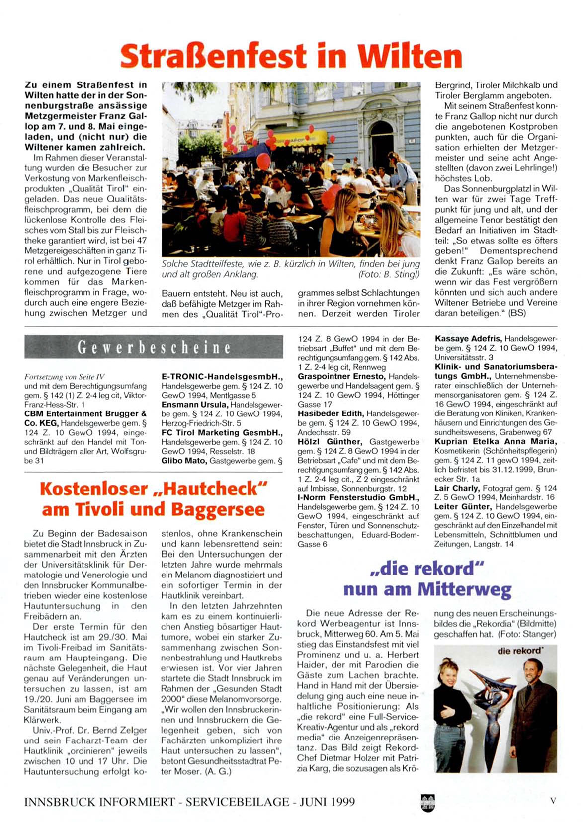 Die neue Adresse der Rekord Werbeagentur ist Innsbruck, Mitterweg 60. Am 5. Mai