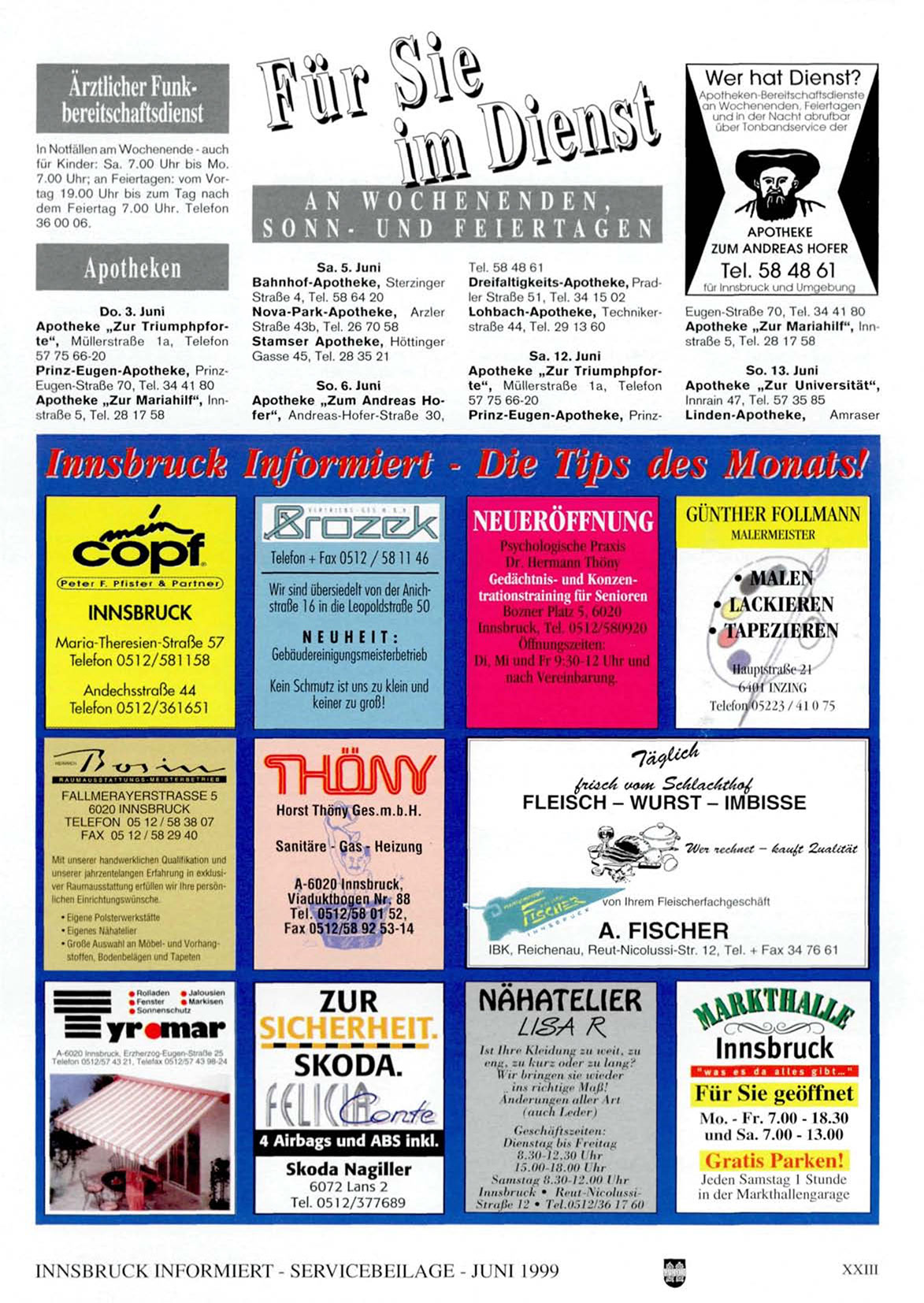 INNSBRUCK INI •"ORMII-RT - SERVICEBEILAGE - JUNI 1999