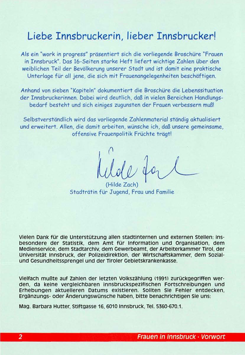 der Innsbruckerinnen. Dabei wird deutlich, daß in vielen Bereichen Handlungsbedarf besteht und sich einiges zugunsten der Frauen verbessern muß!