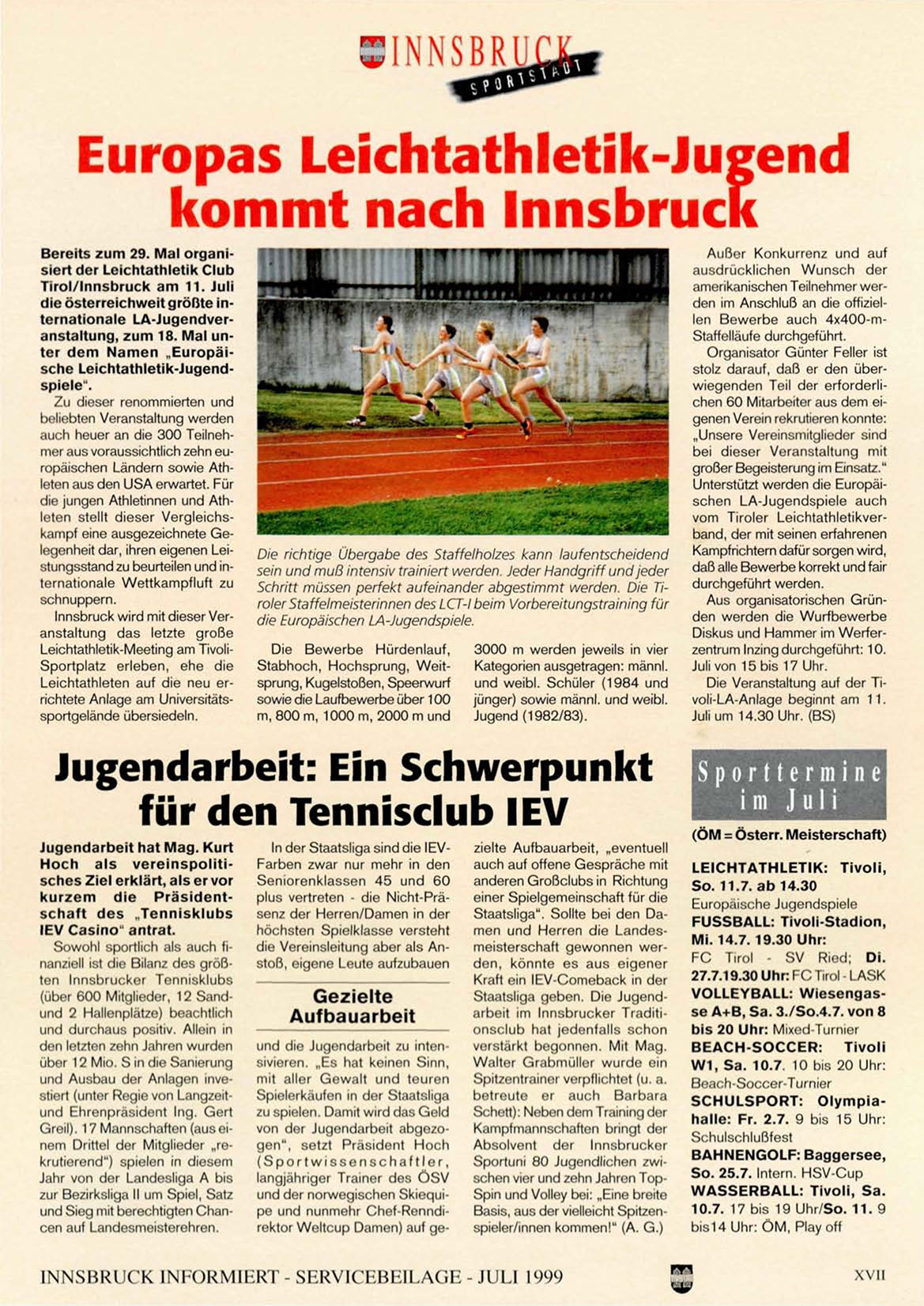 die österreichweit größte internationale LA-Jugendveranstaltung, zum 18. Mal unter dem Namen „Europäische Leichtathletik-Jugendspiele .