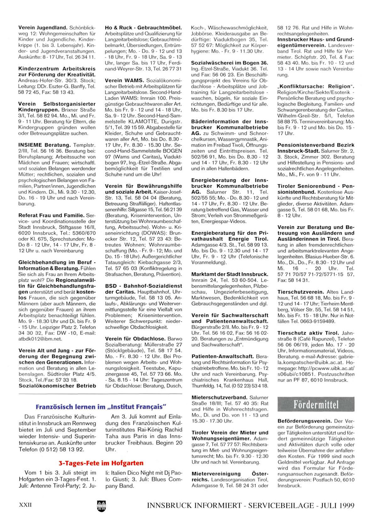 Betreuung Straffälliger). Haftentlassenenhilfe: Sillgasse 15, Tel. 56 21 39