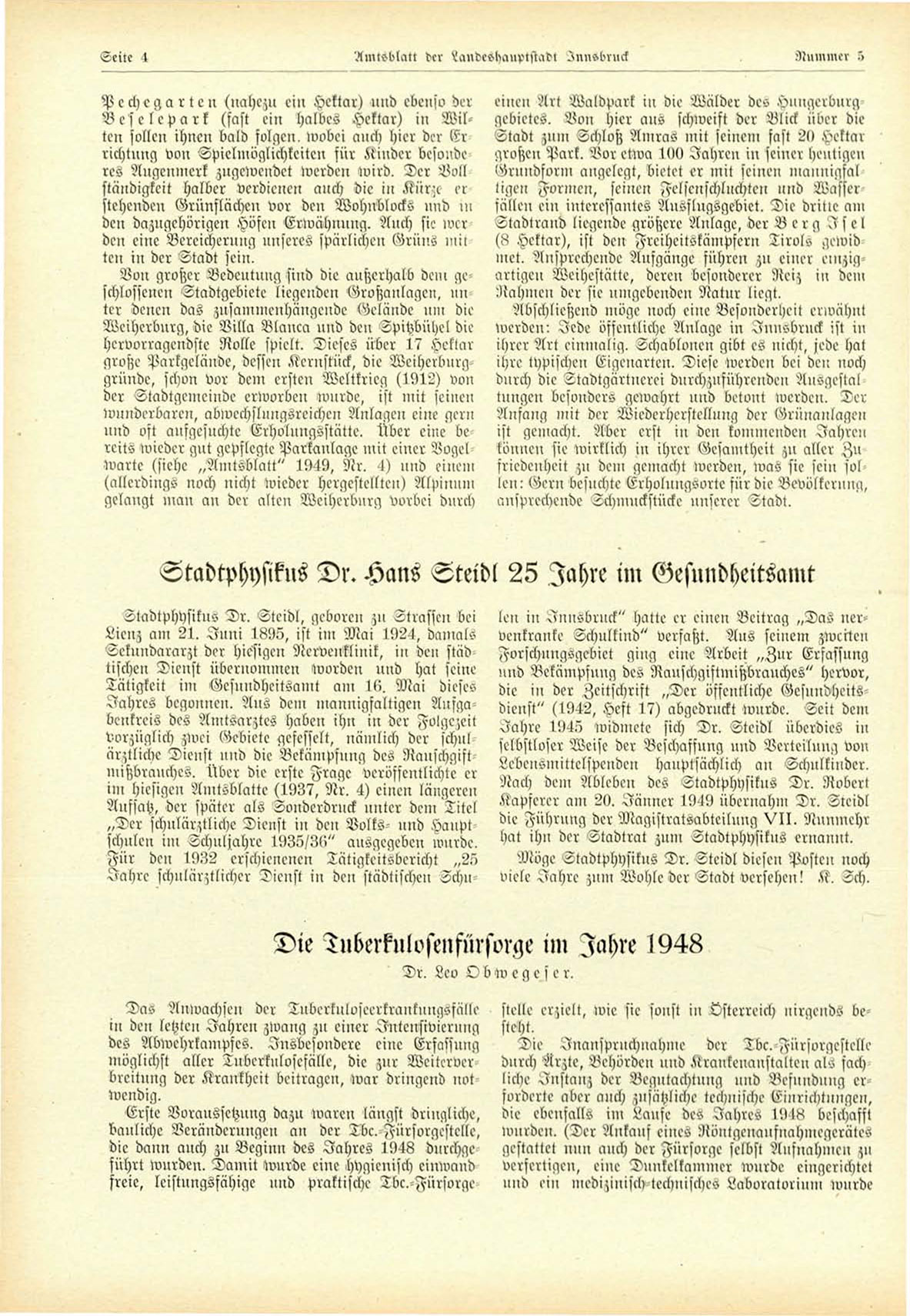 Kapferer an: 20. Jänner 1949 übernahm Dr. Stcidl