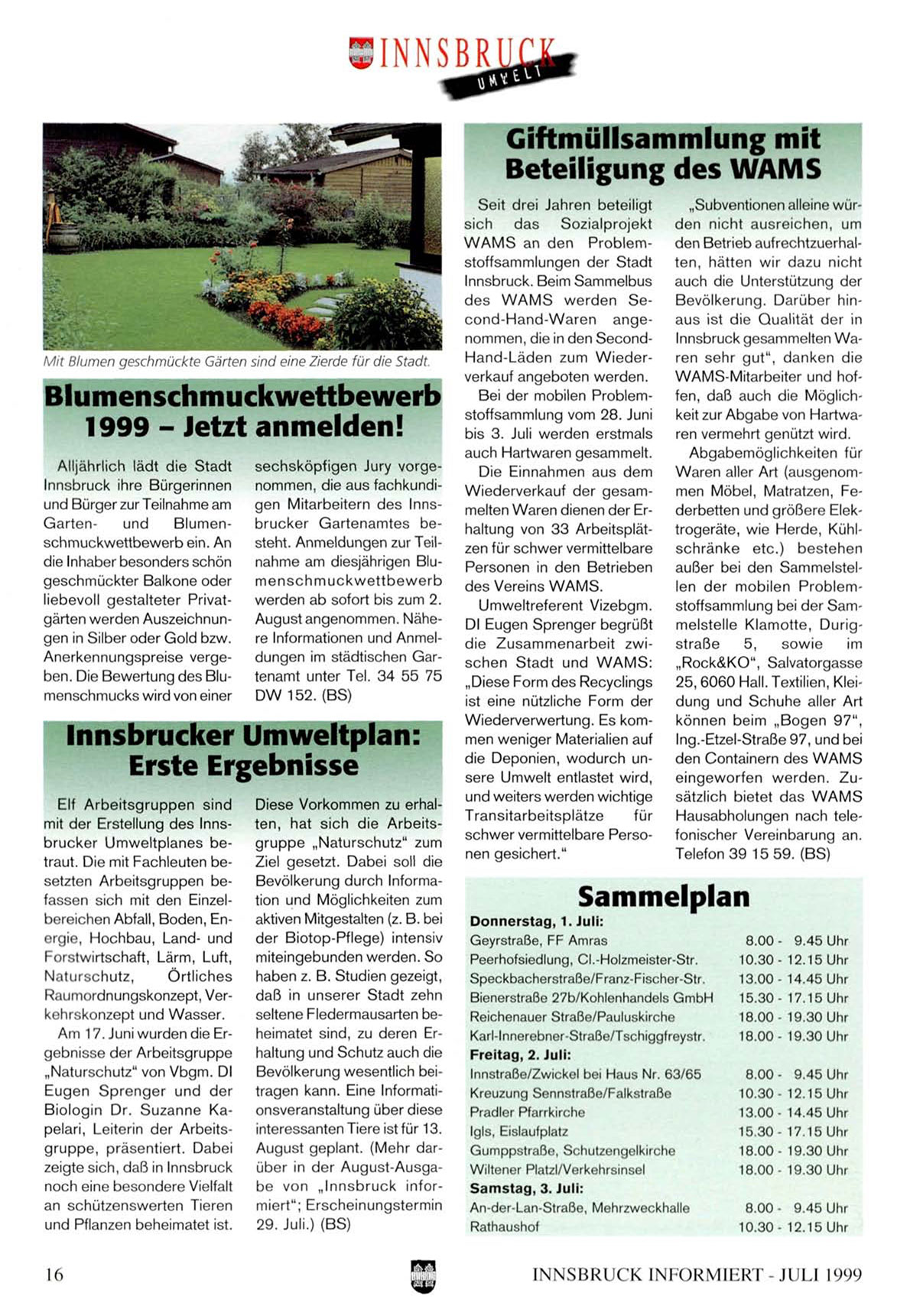 Die Einnahmen aus dem Waren aller Art (ausgenomInnsbruck ihre Bürgerinnen nommen, die aus fachkundi- Wiederverkauf der gesammen Möbel, Matratzen, Feund Bürger zur Teilnahme am gen Mitarbeitern des Inns- melten Waren dienen der Erderbetten und größere Elekbrucker Gartenamtes beGartenund
