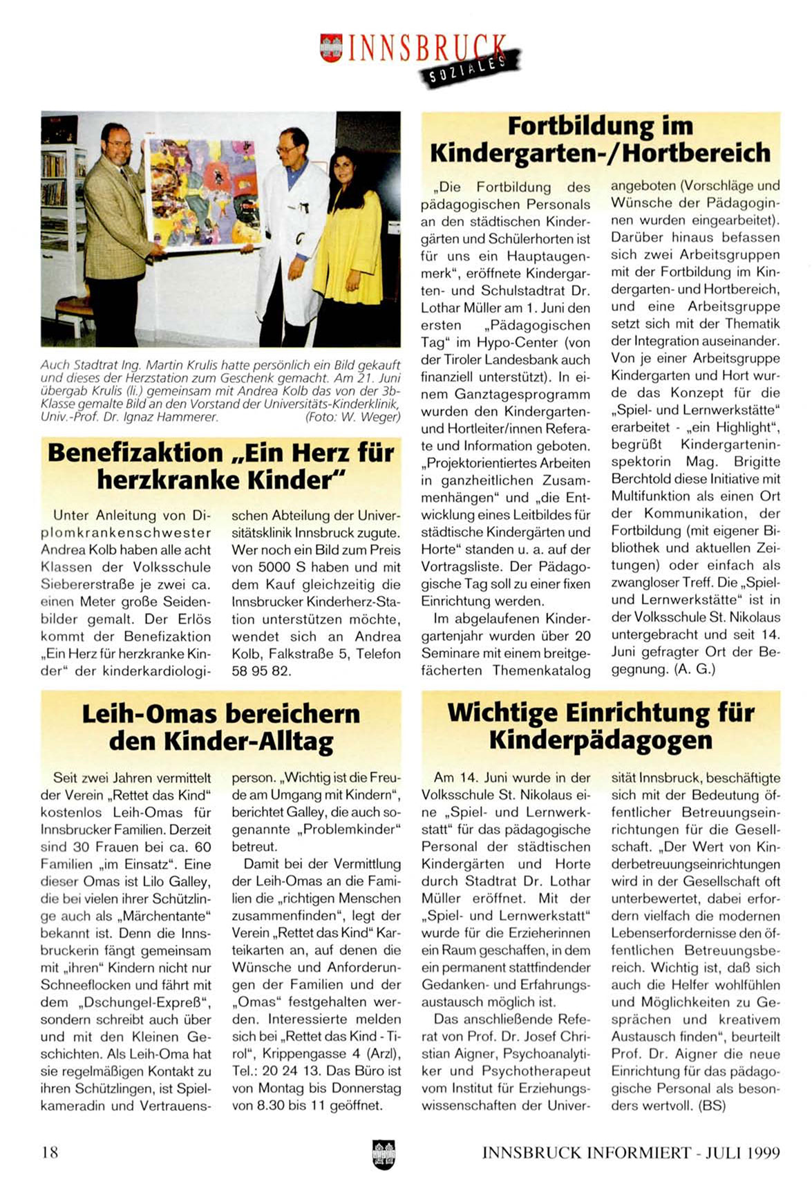 einen Meter große SeidenInnsbrucker Kinderherz-Stabilder gemalt. Der Erlös tion unterstützen möchte,