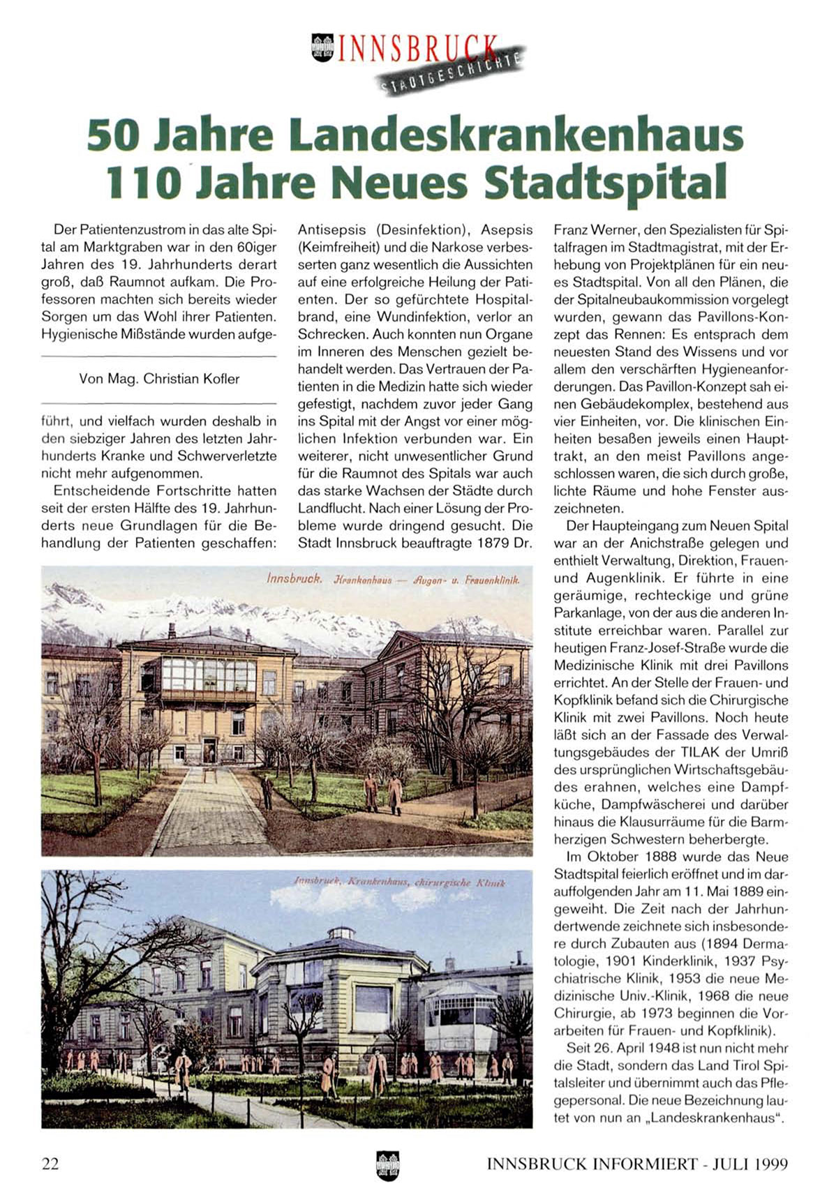 die Stadt, sondern das Land Tirol Spitalsleiter und übernimmt auch das Pflegepersonal. Die neue Bezeichnung lautet von nun an „Landeskrankenhaus".