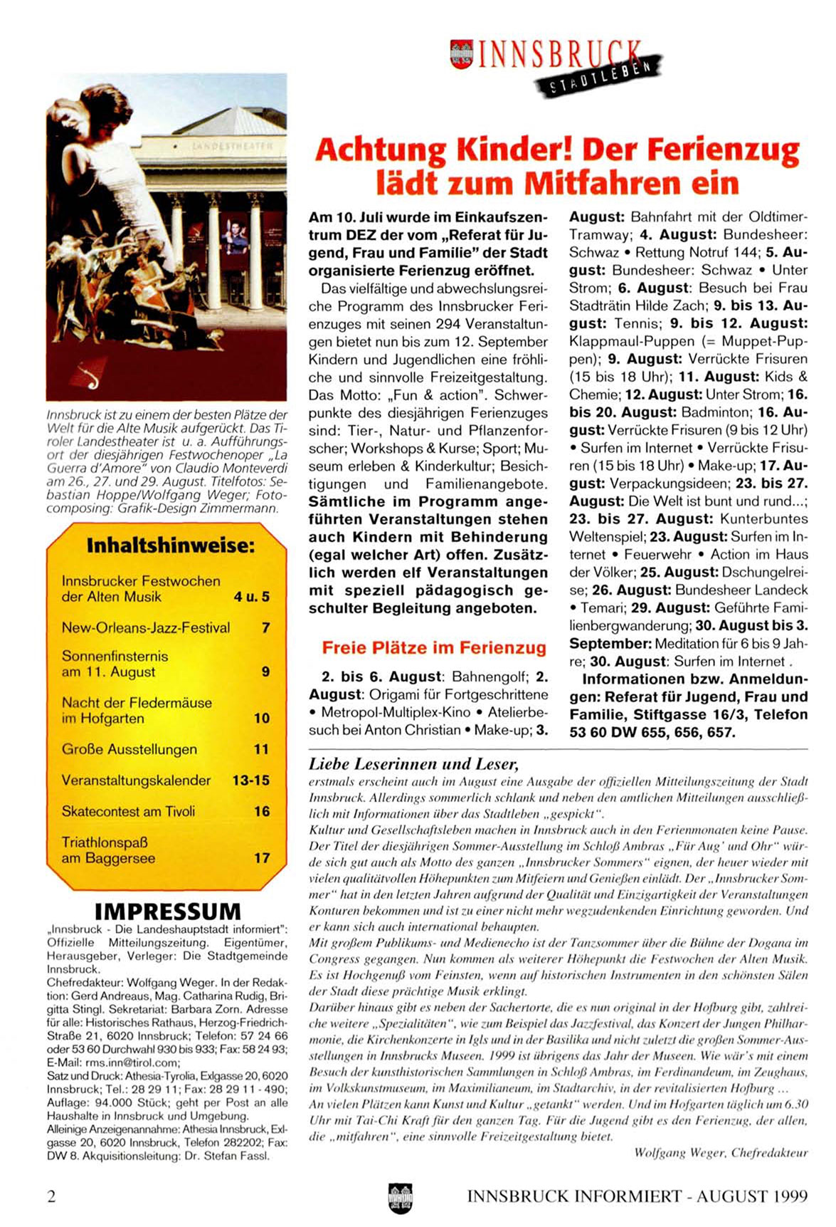 INNSBRUCK INFORMIERT -AUGUST 1999