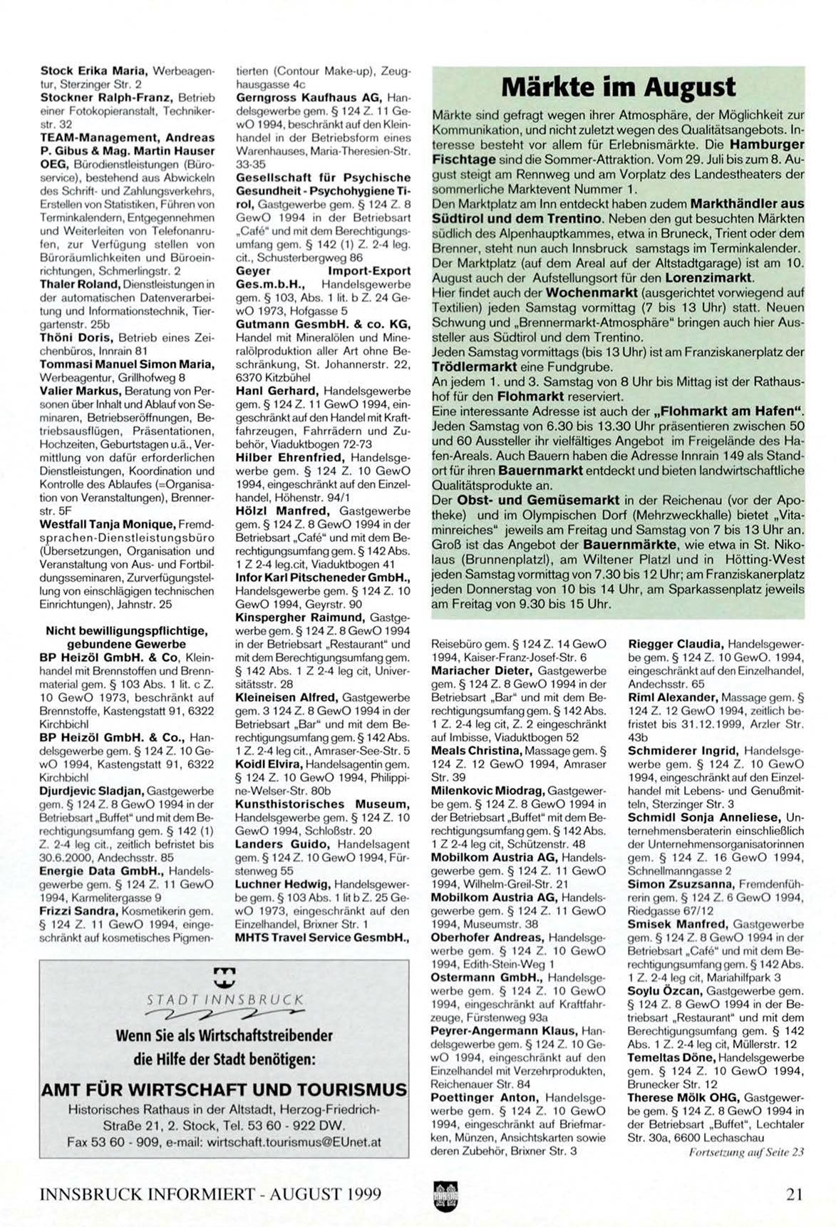 INNSBRUCK INFORMIERT-AUGUST 1999