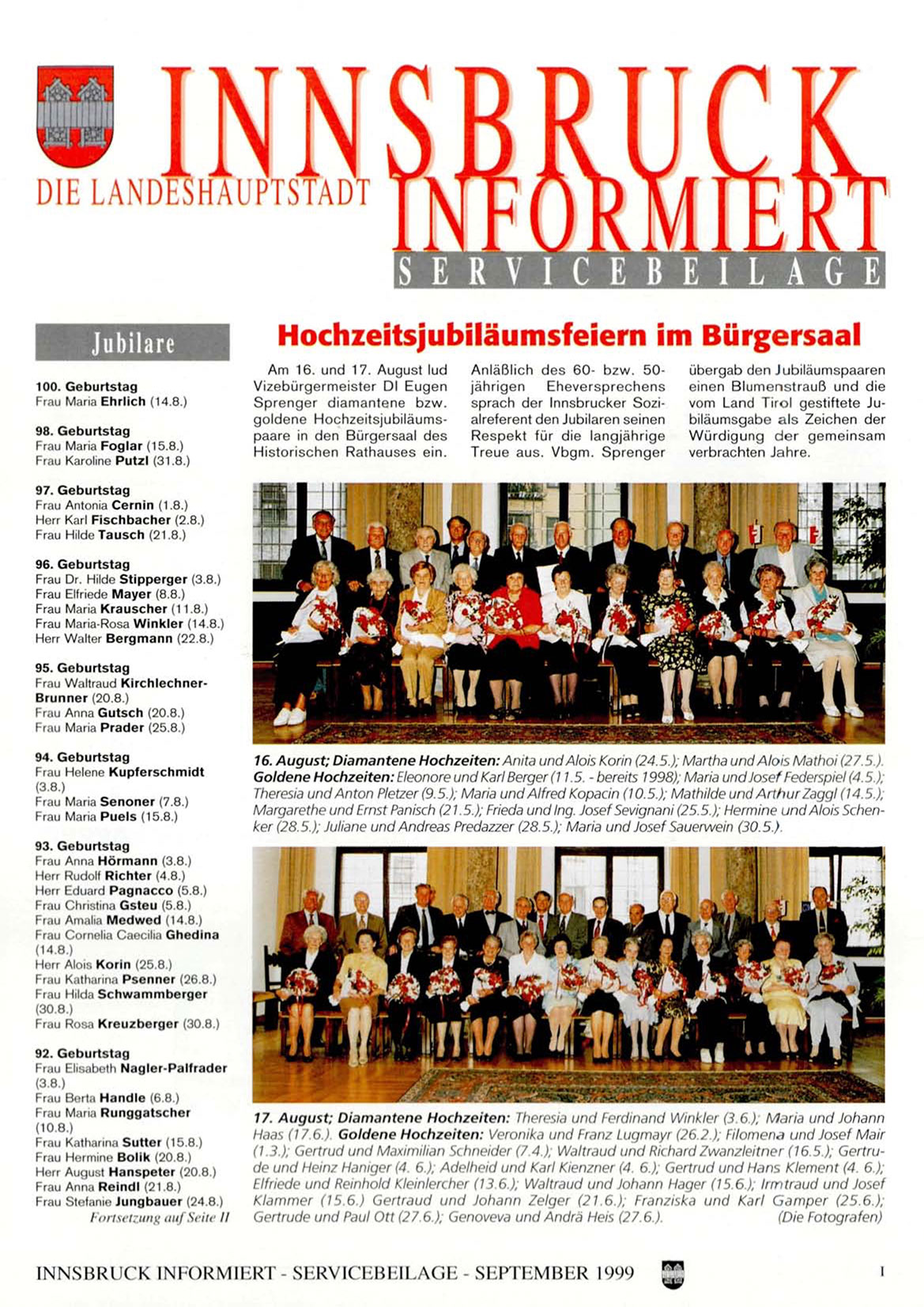 Goldene Hochzeiten: Eleonore und Karl Berger (11.5. - bereits 1998); Maria und Josef Federspiel (4.5.