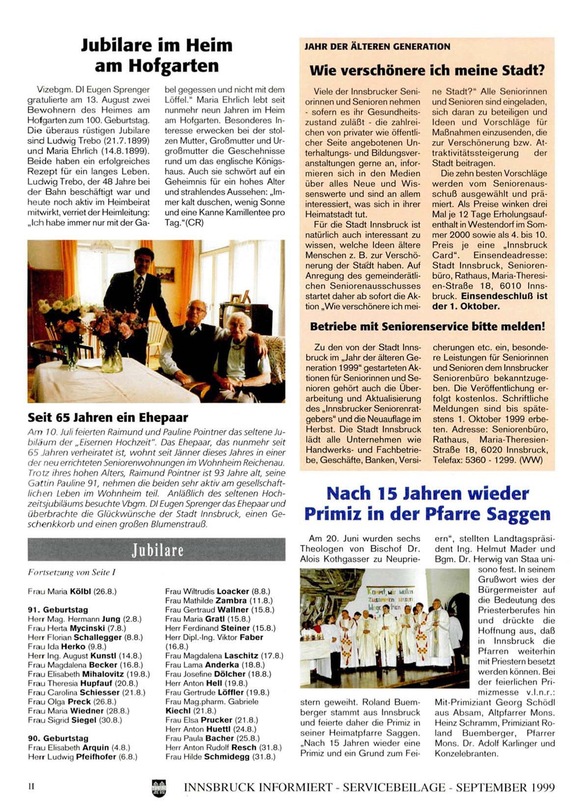 Zu den von der Stadt Innsbruck im „Jahr der älteren Generation 1999" gestarteten Aktionen für Seniorinnen und Senioren gehört auch die Überarbeitung und Aktualisierung