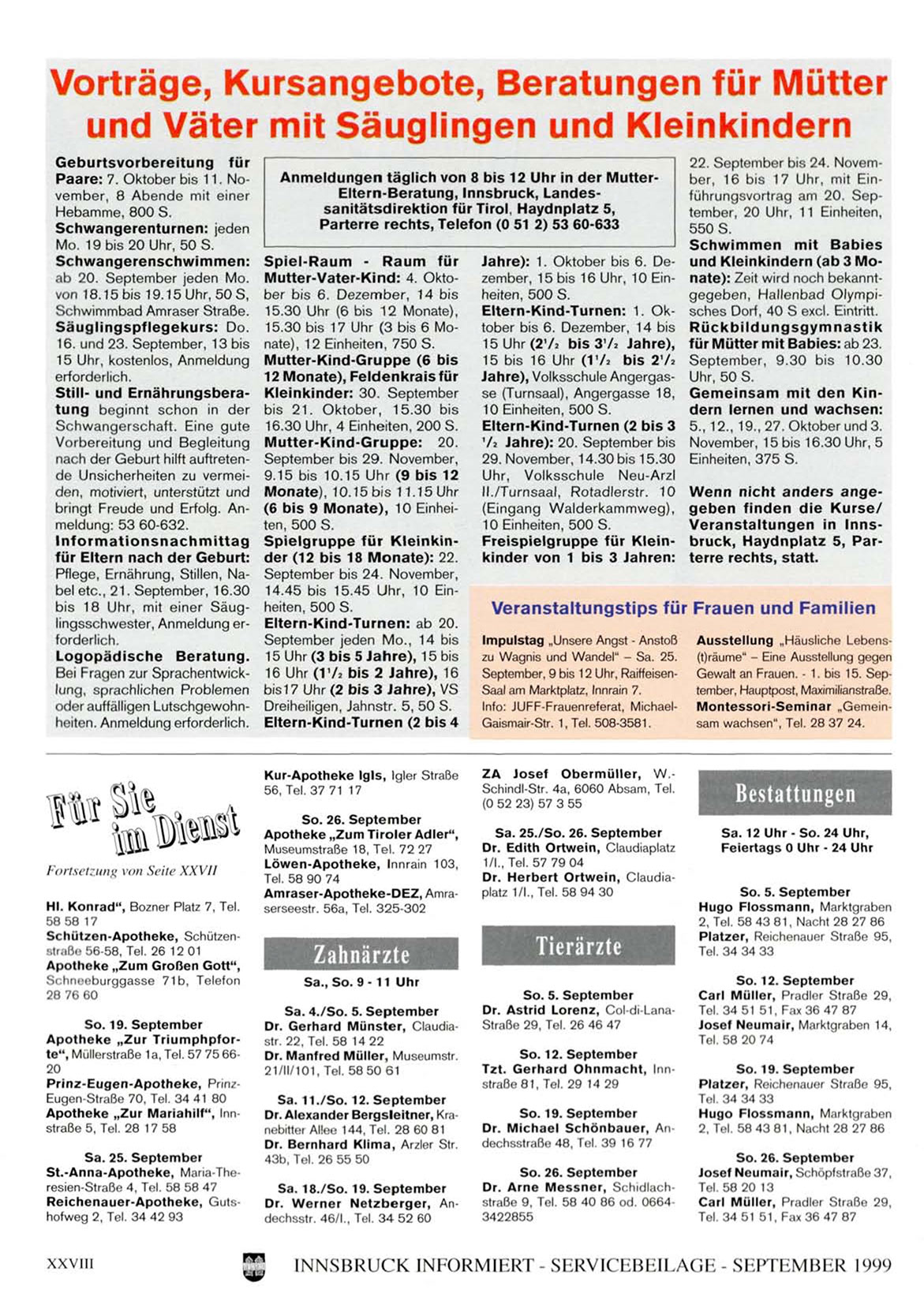 INNSBRUCK INFORMIERT - SERVICEBEILAGE - SEPTEMBER 1999