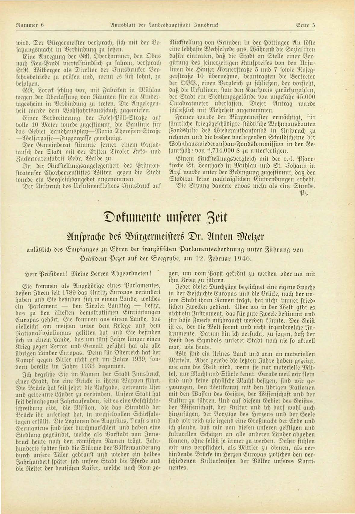 Ansprache des Bürgermeisters Dr. Anton Melzer