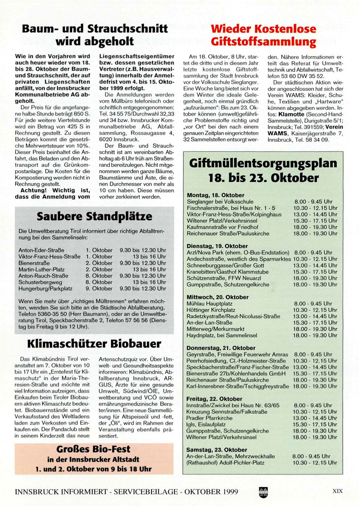 INNSBRUCK INIORMH"RI - SL-RVICliBiilLAGLi - OKTOBLiR 1999
