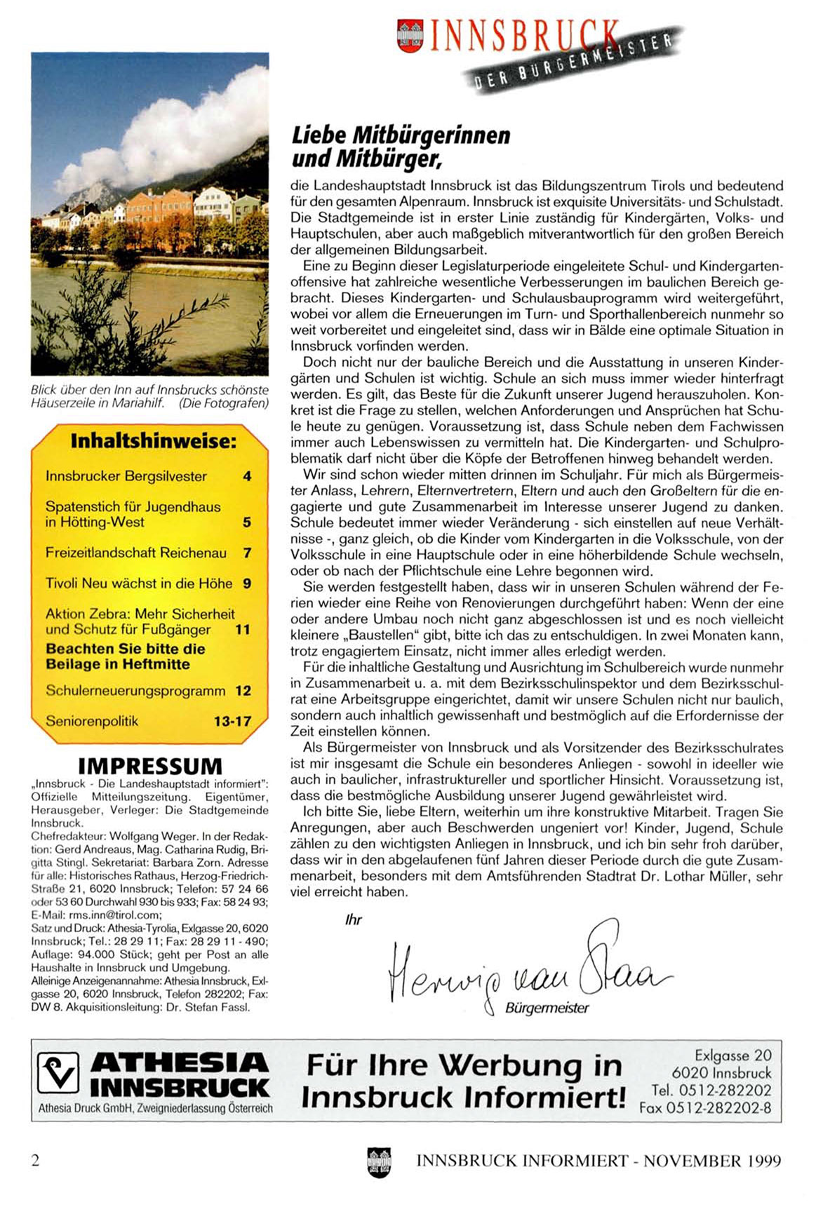 INNSBRUCK INFOKMII-RT- NOVRMBRR I9<»
