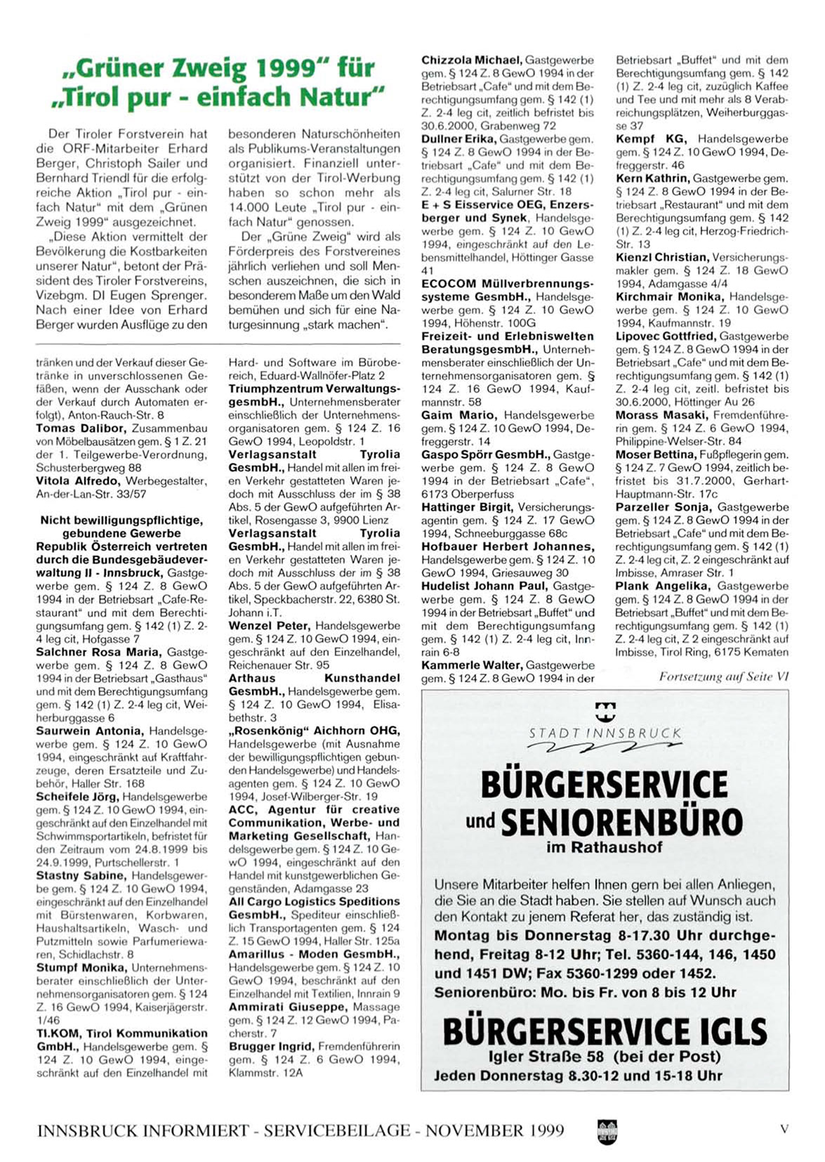INNSBRUCK I N I O R M I I R T - Sl-KVICI-lililLACJI-; - N O V I " M M - R