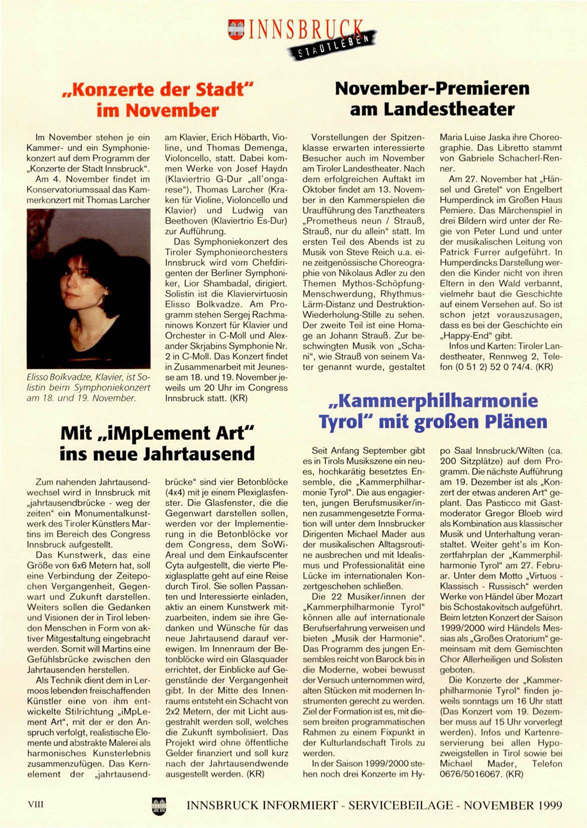 INNSBRUCK INIORMIliRI - SKRVK"IimilLAGH - NOVHMUIiR 1999