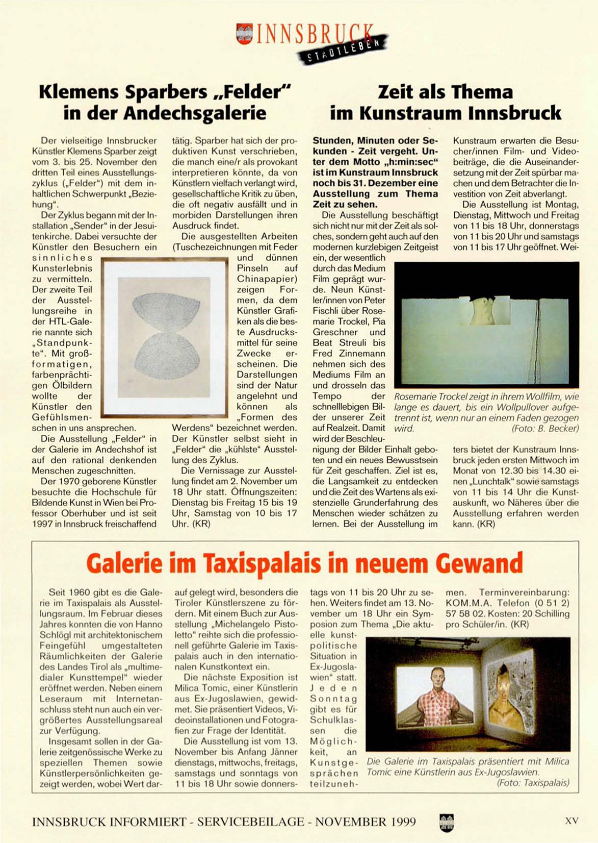 umgestalteten nell geführte Galerie im TaxisRäumlichkeiten der Galerie palais auch in den internatiodes Landes Tirol als „multime- nalen Kunstkontext ein.