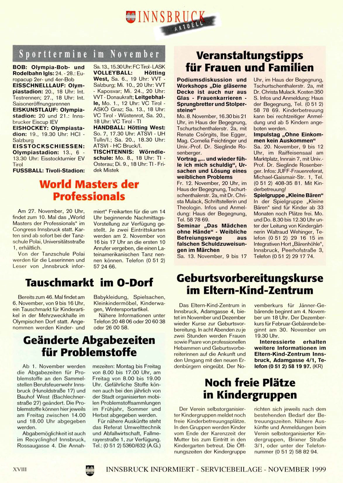 INNSBRUCK INFORMIERT - SERVICEBEILAGE - NOVEMBER 1999