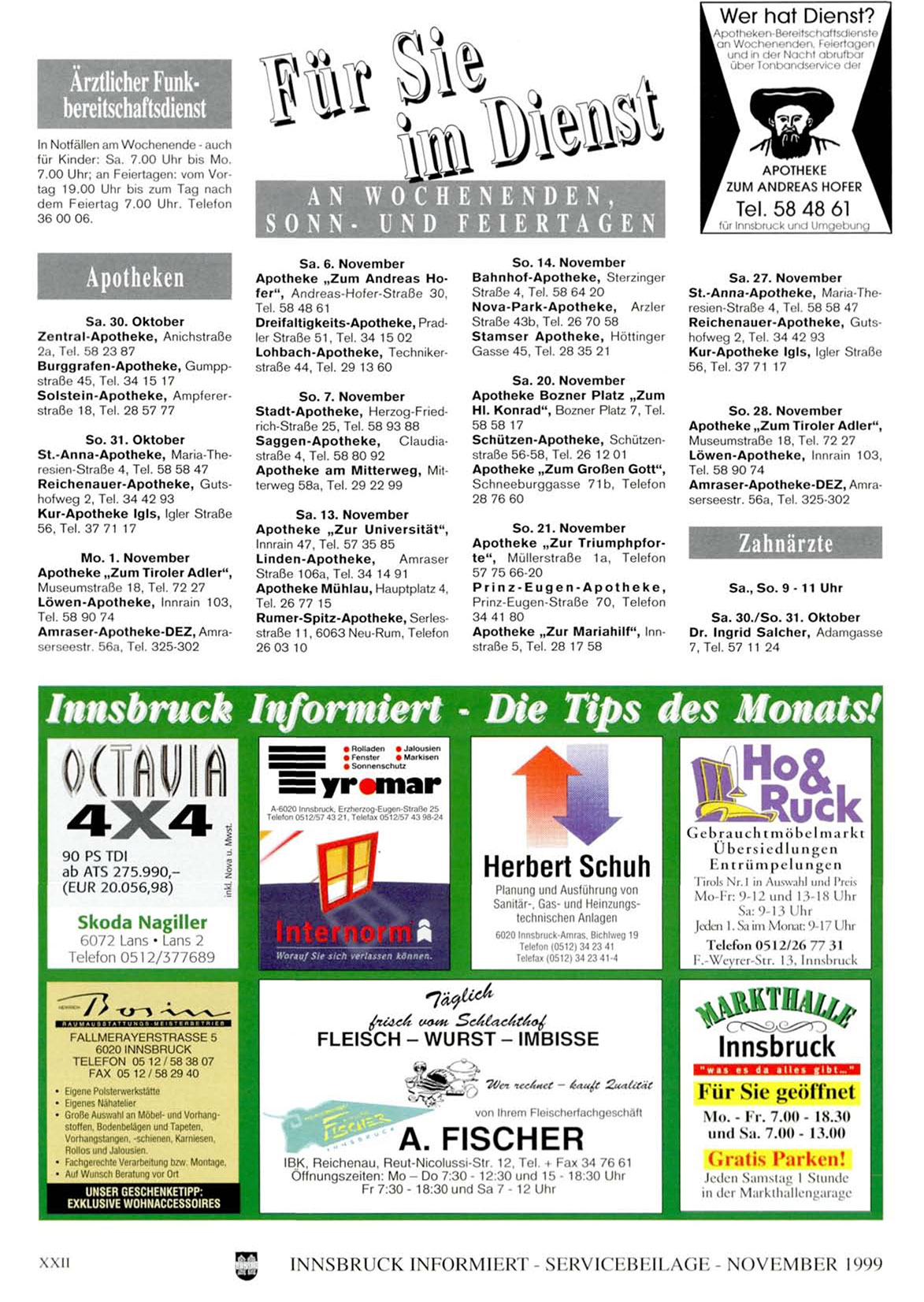 INNSBRUCK INFORMIERT -SERVICEBEILAGE- NOVEMBER 1999