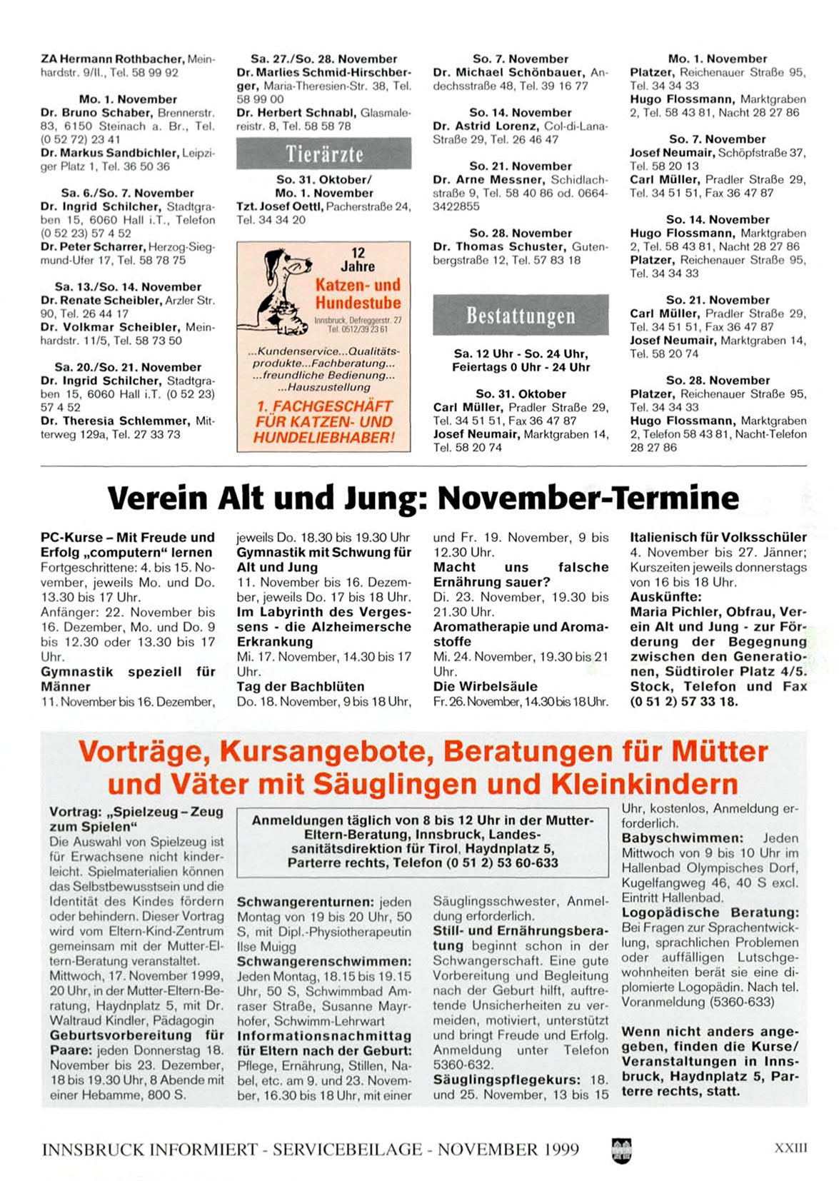 INNSBRUCK INI-ORMIKRT- SI-RVICI-BKILAGK - NOVIiMBI-R 1999