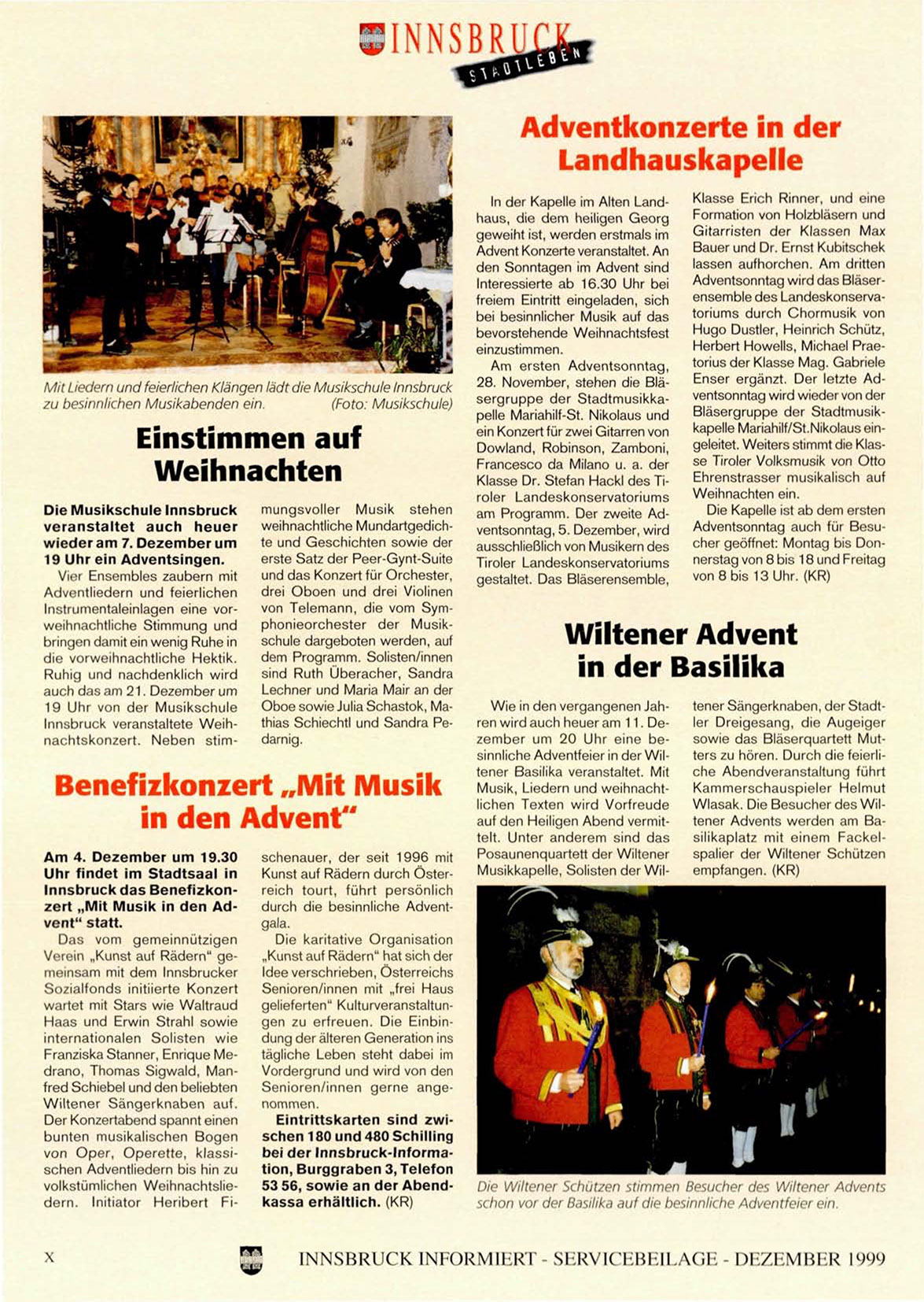 von Oper, Operette, klassibei der Innsbruck-Informaschen Adventliedern bis hin zu