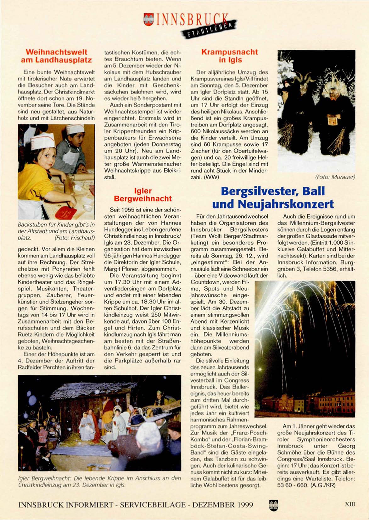 INNSBRUCK INFORMIERT SERVICEBEILAGE - DEZEMBER 1999