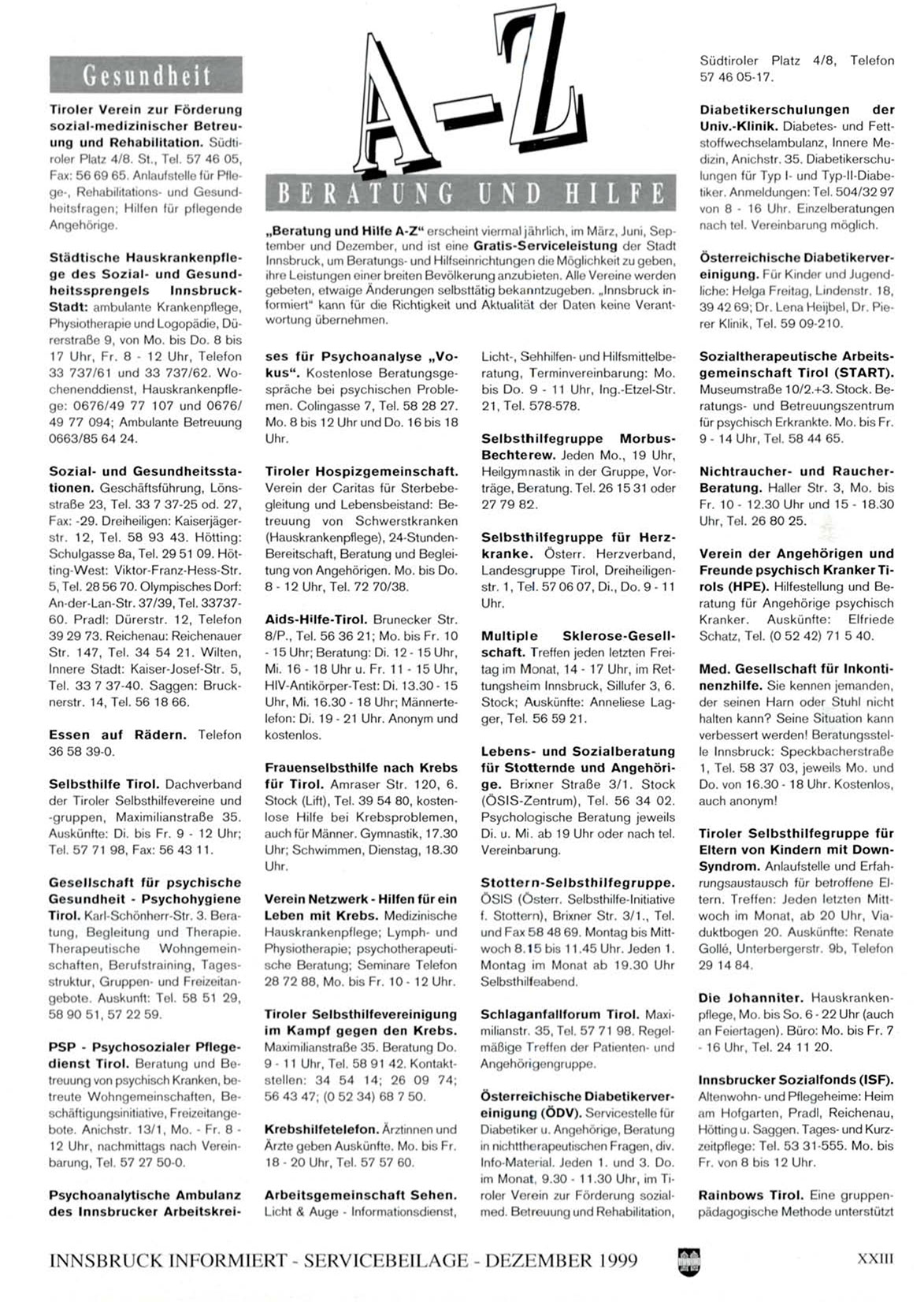 Landesgruppe Tirol, Dreiheiligenstr. 1, Tel. 57 06 07, Di., Do. 9 - 11