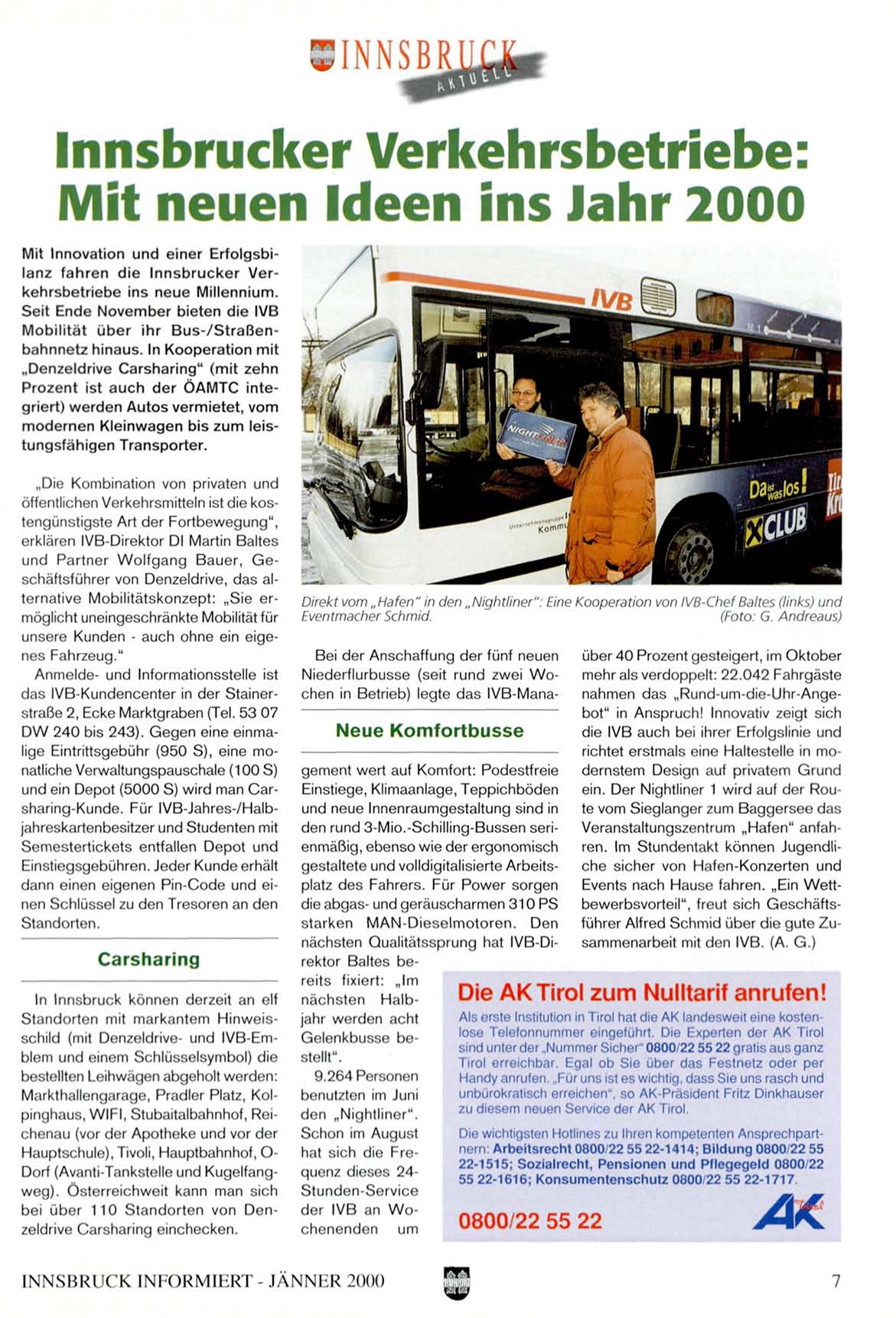 Mit I n n o v a t i o n u n d e i n e r E r f o l g s b i lanz f a h r e n die I n n s b r u c k e r Verk e h r s b e t r i e b e ins n e u e M i l l e n n i u m .