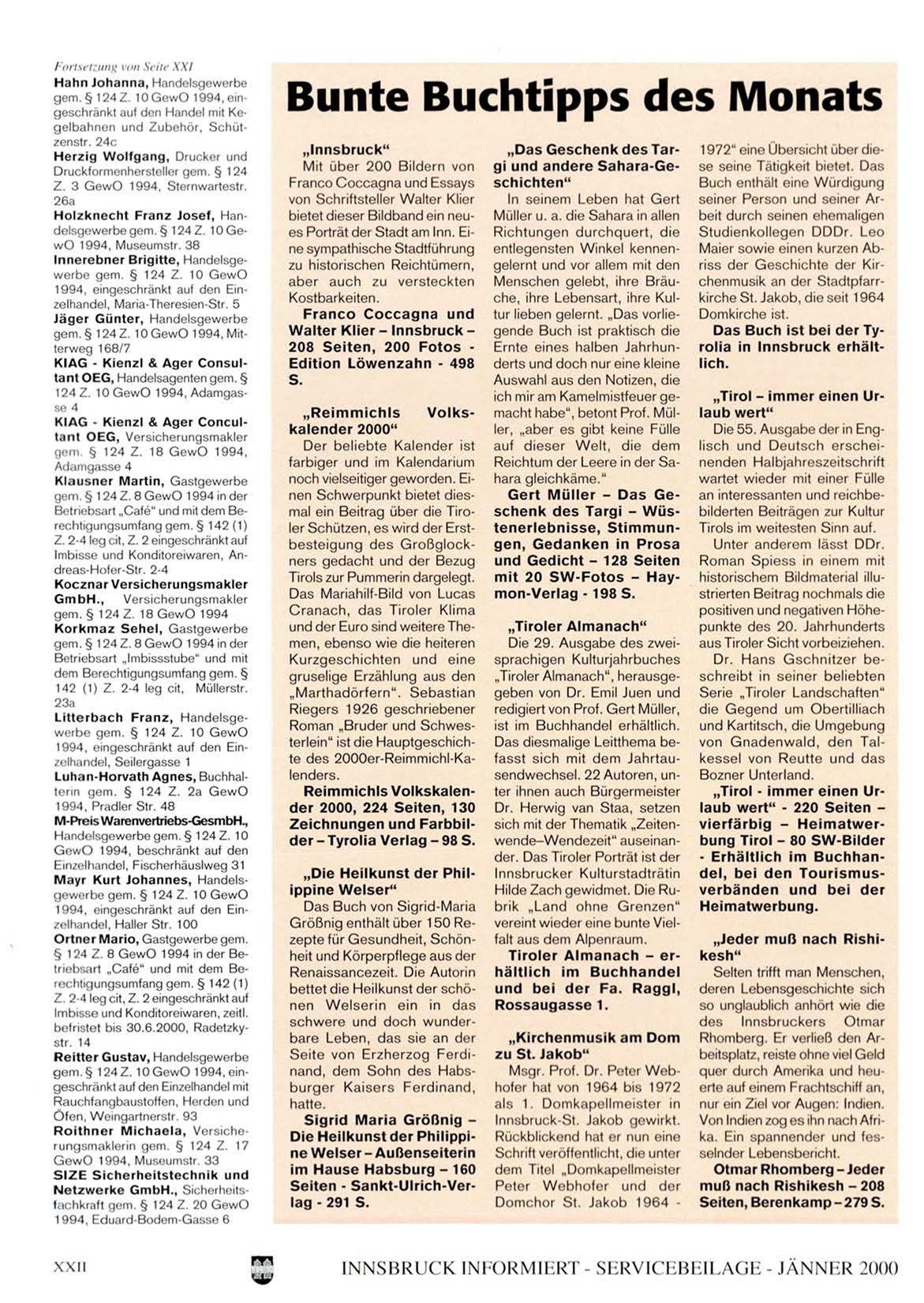 INNSBRUCK I N F O R M I E R T - SERVICEBEII ,AO.E - JÄNNER 2000